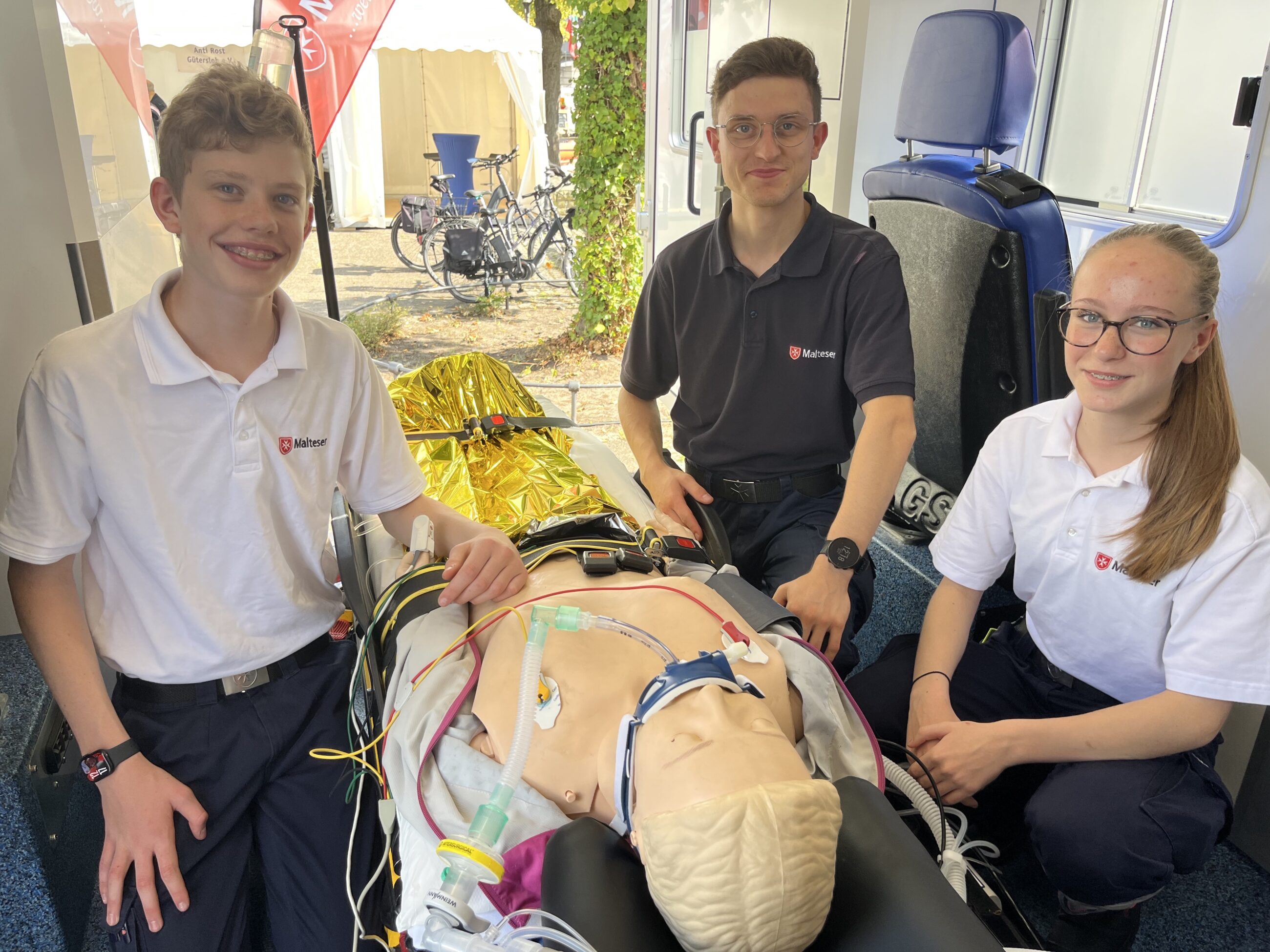 Gleichzeitig fand erstmals auch der 22. Selbsthilfetag des Kreises Gütersloh im Rahmen des Bürgertages statt. Mitmachaktionen der Malteser, wie die Reanimation an einer Puppe oder die Besichtigung eines Einsatzfahrzeugs, machten lebensrettende Maßnahmen für alle greifbar. Besucherinnen und Besucher lernten: 100 bis 120 Herzdruckmassagen pro Minute – im Takt von „Stayin’ Alive“. Ilias Agelidakis von der Schülereinheit der Malteser: „Wir suchen neue Freiwillige in verschiedenen Bereichen. Ab 13 Jahren kann man schon mitmachen.“