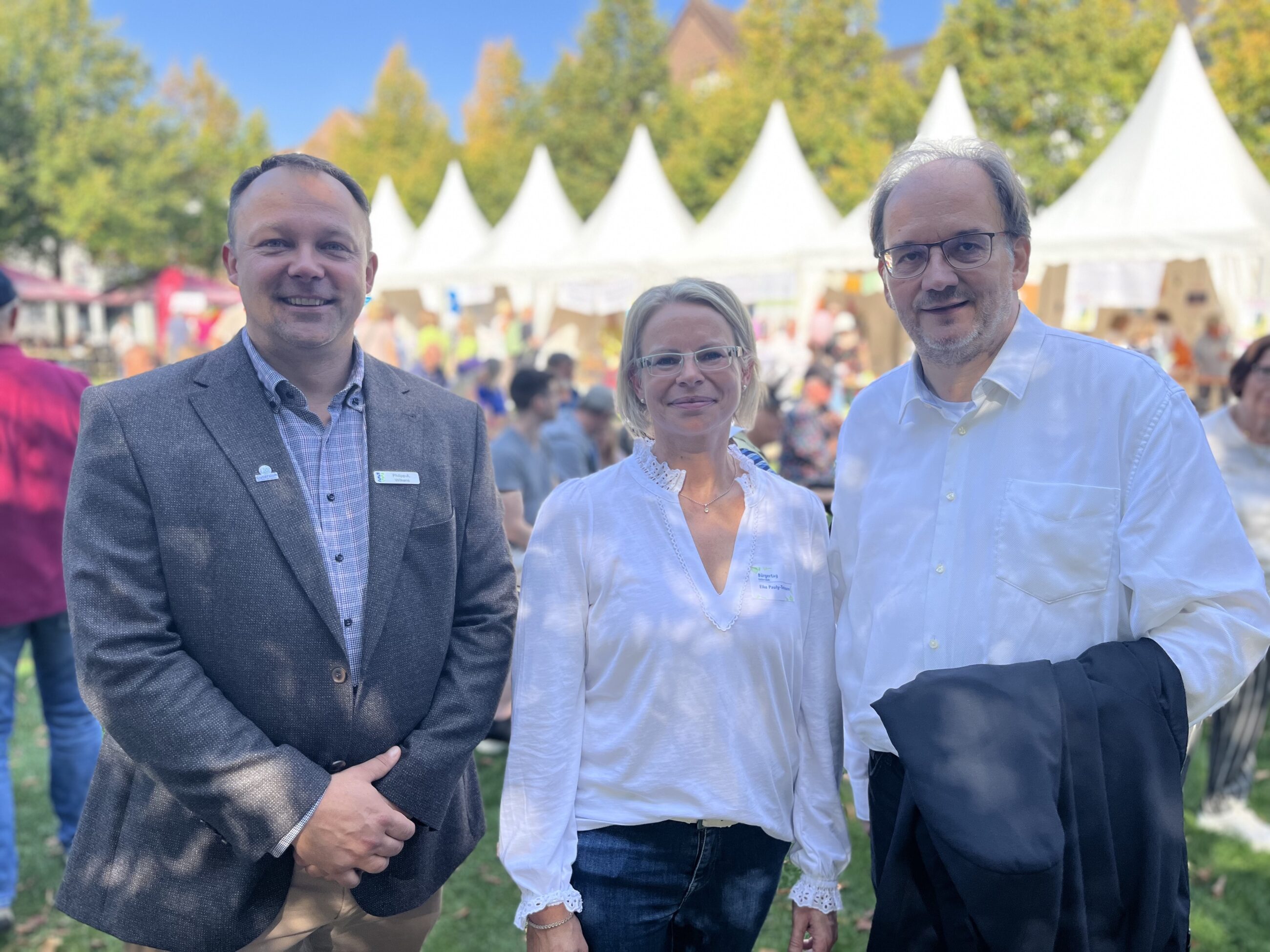 BU Wilkens_Pauly-Teismann_Trepper: Erfreut über zahlreiche Besucher: (v.l.) Philipp Wilkens, Fachbereichsleiter Ratsangelegenheiten und Bürgerdialog, Ehrenamtskoordinatorin Elke Pauly-Teismann und Bürgermeister Matthias Trepper. Foto: Stadt Gütersloh