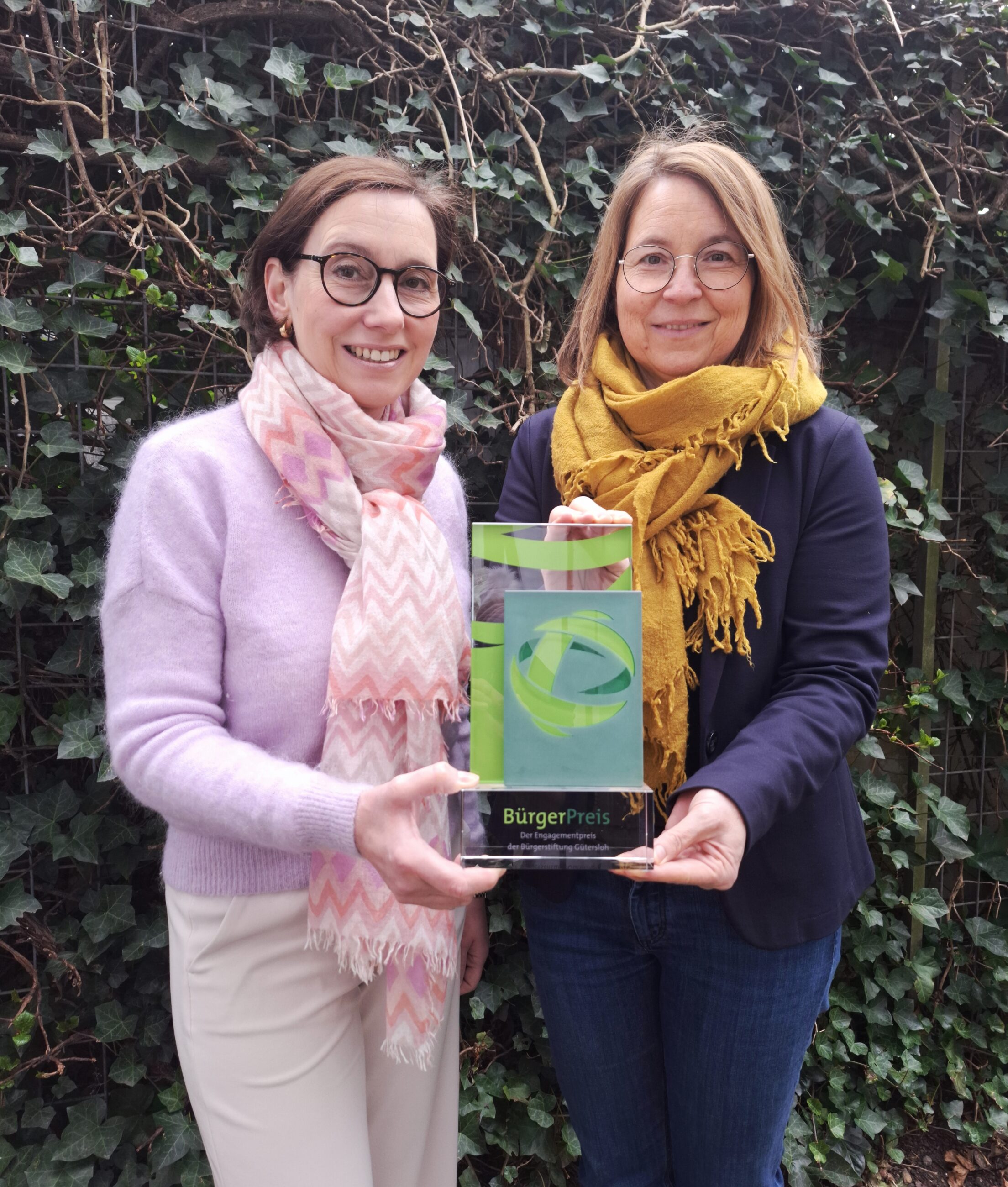 Der mit 5000 Euro dotierte BürgerPreis der Bürgerstiftung wird für besonderes ehrenamtliches Engagement vergeben. Die Stiftungsvorsitzende Katrin Meyer (links) und Geschäftsführerin Nina Spallek verweisen darauf, dass die Gütersloher noch bis zum 14. April Kandidaten nominieren können.