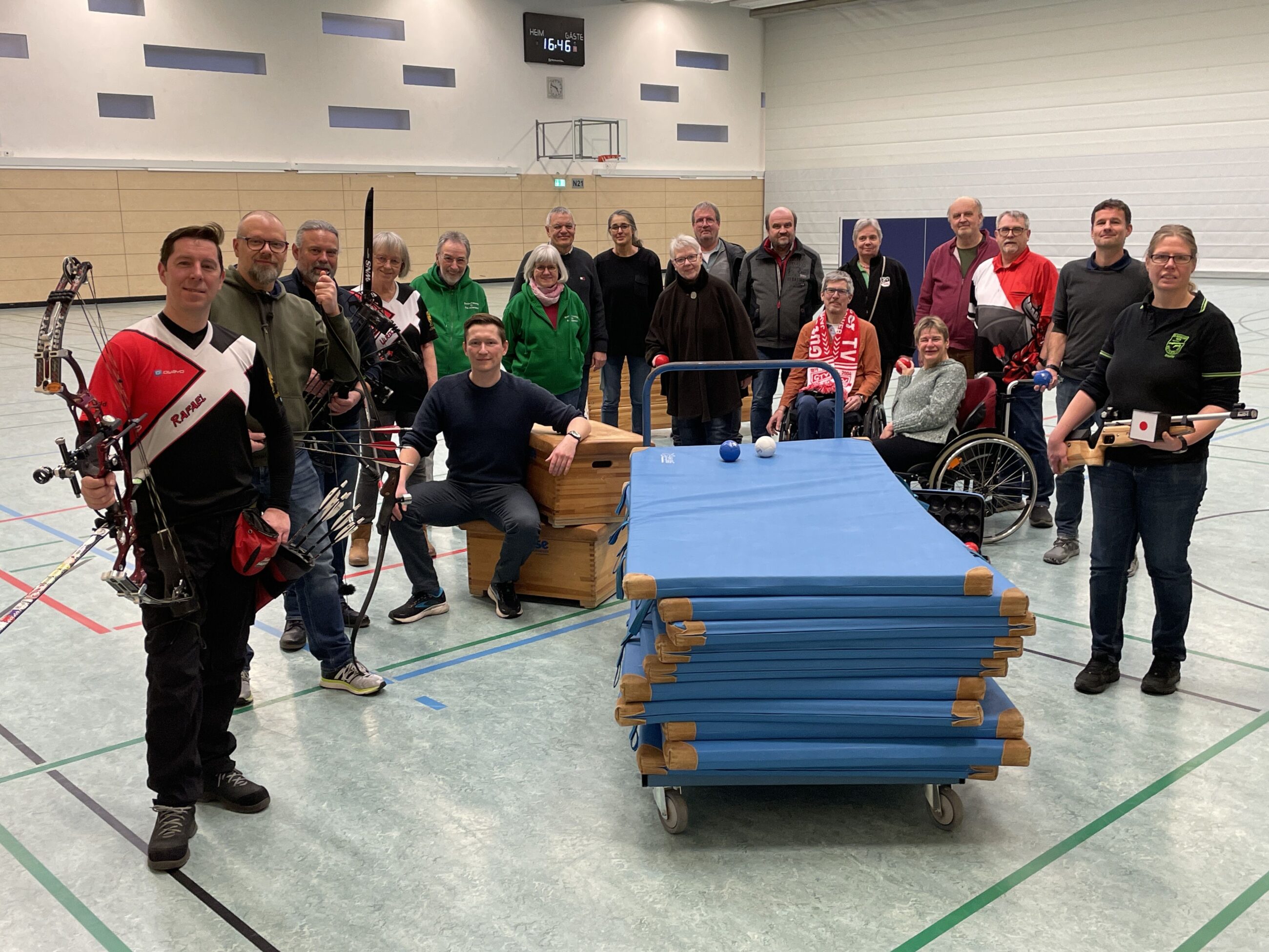 In 90-minütigen Intervallen werden in jedem Hallendrittel der Innenstadtsporthalle verschiedene Sportarten vorgestellt und zum Mitmachen geöffnet. „Der ‚Sporttag inklusiv und für jeden‘ ist eine echte Win-Win-Veranstaltung“, erklärt Heiko Gottwald, Leiter des Fachbereichs Sport. „Zum einen erhalten Sportvereine die Gelegenheit, ihre Angebote und sich selbst zu präsentieren. Zum anderen können Interessierte an einem einzigen Tag und an einem Ort eine Vielzahl von Sportarten ausprobieren – das gibt es in dieser Form sonst selten.“ Auch in der Neuauflage wird ein breites Spektrum an Sportarten angeboten, das für alle Altersklassen, Erfahrungsstufen sowie für Menschen mit und ohne Behinderung geeignet ist. Mit dabei sind klassische Sportarten wie Fußball (1. FC Isselhorst), Handball (TV Isselhorst), Tischtennis und Kinderturnen (GTV). Ebenso vertreten sind aber auch exotischere Sportarten wie Bogenschießen, Sportschießen und Laserschiessen (SV Pavenstädt). Interessierte können zudem Cross-Boule (SVA Gütersloh), Hallenboccia (GRSV), Schach (GTSV23), Rollstuhlbasketball (DJK Rheda) oder die Trendsportart Dart (Schützenverein „Tell“ Nordhorn) ausprobieren. Der CVJM stellt dar, welche Anforderungen beim Sportabzeichen gefordert sind. „Den Vereinen wurde mitgegeben, dass sie gerne alternative Sportarten ausprobieren und anbieten können, um neue Zielgruppen zu erschließen“, erklärt Thomas Piekorz vom Fachbereich Sport. „Wir sehen diese leichten Ergänzungen zu den bekannten Sportarten beispielsweise bereits beim Fußball mit Gehfußball oder beim Tennis mit Tischtennis.“