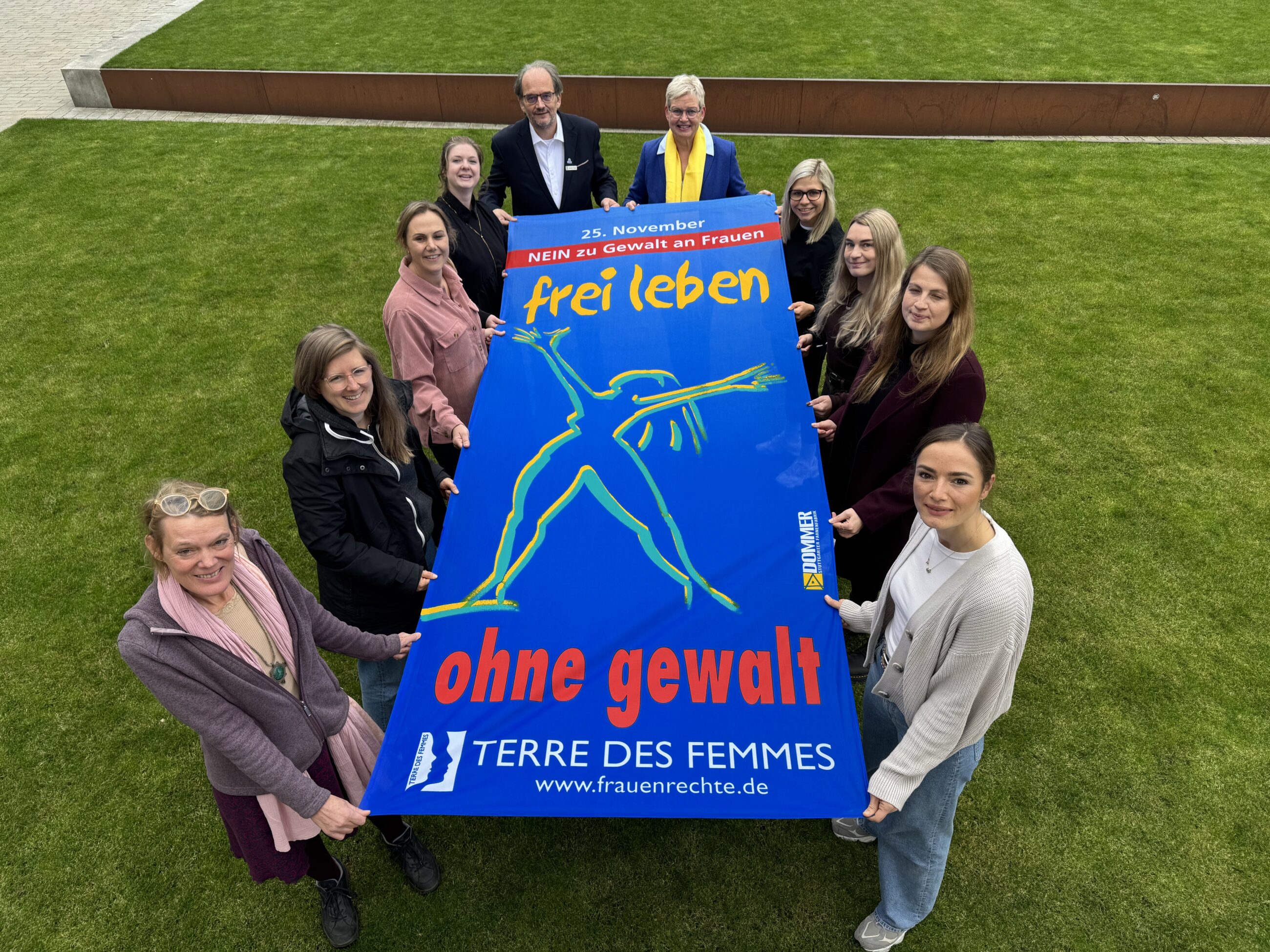 Mit der bundesweiten Fahnenaktion ruft die Organisation TERRE DES FEMMES seit vielen Jahren dazu auf, Gewalt gegen Frauen und Mädchen nicht zu tolerieren und Solidarität zu zeigen. Unter dem diesjährigen Motto: „#WegAusDerGewalt – Ein starkes Netz gegen Partnerschaftsgewalt!“ setzt die Stadt gemeinsam mit der Frauenberatungsstelle und dem Frauenhaus Gütersloh ein sichtbares Zeichen gegen geschlechtsspezifische Gewalt. Denn Frauen, die sich aus der Gewalt ihres Partners befreien, brauchen ein sicheres Netz aus Hilfsangeboten und Unterstützung.  Auch nach einer Trennung ist die Gefahr nicht vorbei: Fast täglich werden in Deutschland Frauen wegen ihres Geschlechts von ihrem Partner oder Ex-Partner ermordet.