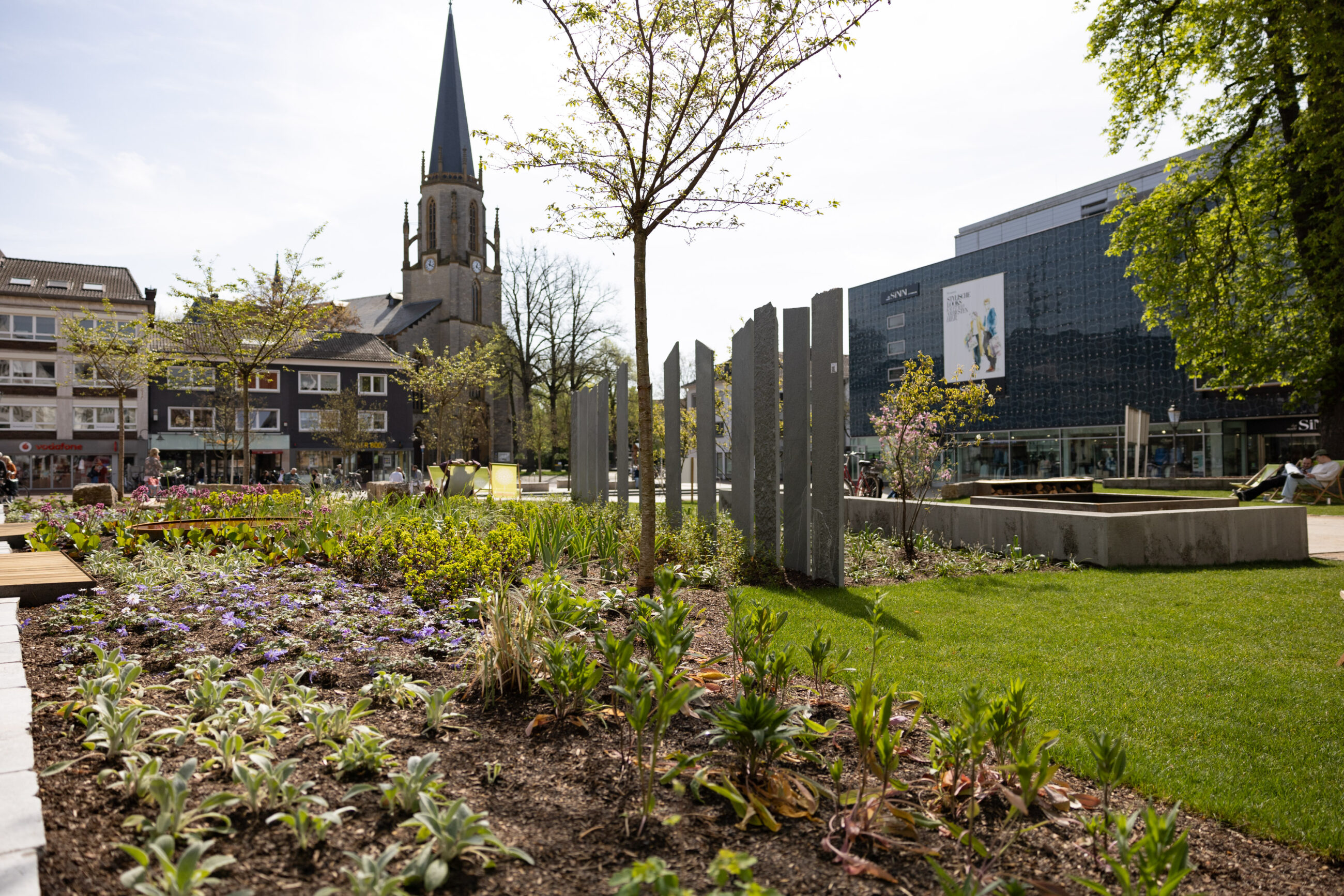 Foto: Für den Kinderflohmarkt am 13. April verwandelt sich die Parklandschaft auf dem Berliner Platz in eine Verkaufsfläche. (Copyright: Lena Descher)