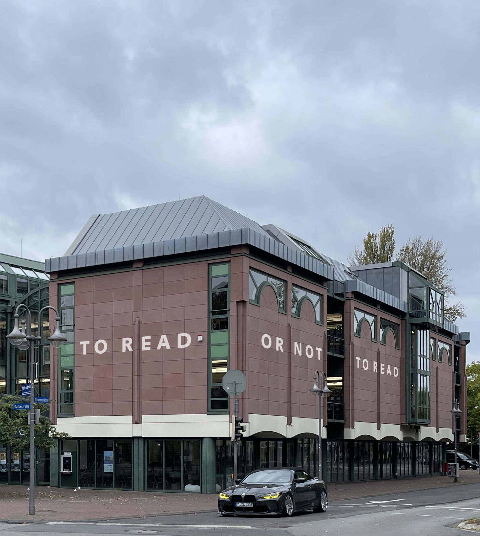 Das berühmte Shakespeare-Zitat abgewandelt in „to read, or not to read?” – Lesen oder nicht lesen ist keine Frage nach einer Freizeitbeschäftigung, sondern eine zutiefst existentielle Frage in heutigen Zeiten. Der Schriftzug ergreift durch seine Größe wie durch seinen manifest-artigen Minimalismus in Form und Inhalt. Foto: Mannstein + Vill