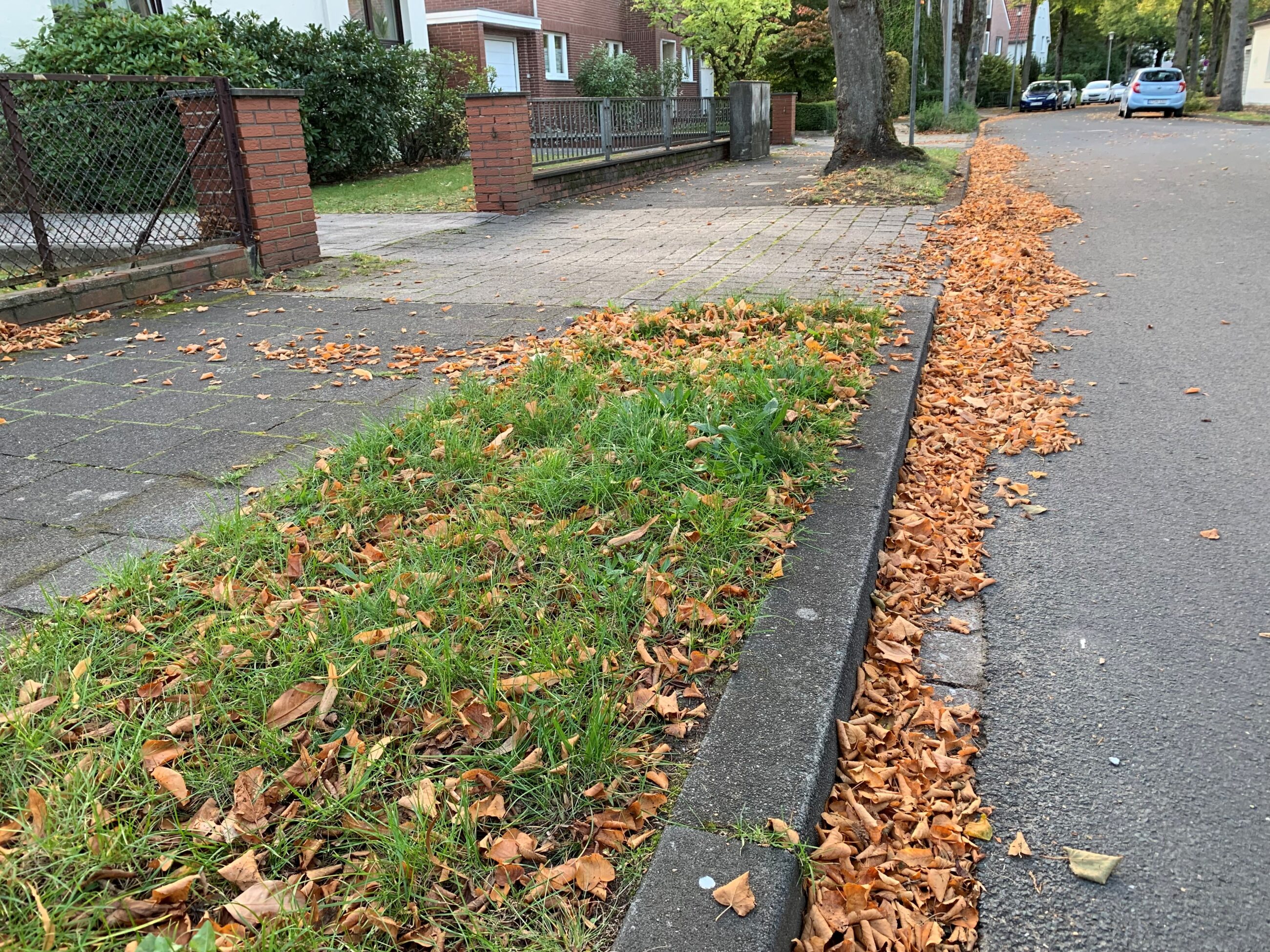 Gütersloh (gpr). Wenn der Herbst die Blätter fallen lässt, sind Kehrmaschinen und Anwohner gleichermaßen gefordert. Doch derzeit stößt die Stadtreinigung an ihre Grenzen: Immer wieder verstopfen die Maschinen, weil Blätter von Gehwegen und Grundstücken hoch und kompakt in die Rinnen gefegt werden. Hinzu kommt ein weiteres Problem: Wenn die Bordsteinkante unter den Laubbergen verschwindet, können die Fahrer diese nicht mehr eindeutig erkennen und der Seitenbesen des Fahrzeugs kann beschädigt werden. Dabei ist die Zuständigkeit eigentlich klar geregelt: Die Stadtreinigung ist für die Fahrbahnen verantwortlich, Grundstückseigentümer kümmern sich um die Gehwege. Das dabei anfallende Laub und andere Abfälle müssen von den Verantwortlichen selbst entsorgt werden. Nicht erlaubt ist, das Laub vom Gehweg auf die Straße oder in die Rinne zu fegen. Dennoch erreichen den Fachbereich immer wieder Anrufe von Anwohnerinnen und Anwohnern, die sich wundern, warum die Kehrmaschine an dicken Laubschichten vorbeifährt. „Wir setzen im Augenblick zwei zusätzliche Kehrmaschinen ein und würden mit dem Laubfall gut fertig, wenn die Bürger das Laub nicht in die Rinne kehren würden“, so Ulrich Zurlinden, Leiter des Fachbereichs Stadtreinigung. „Zum Glück verhalten sich die meisten Anwohner korrekt.“