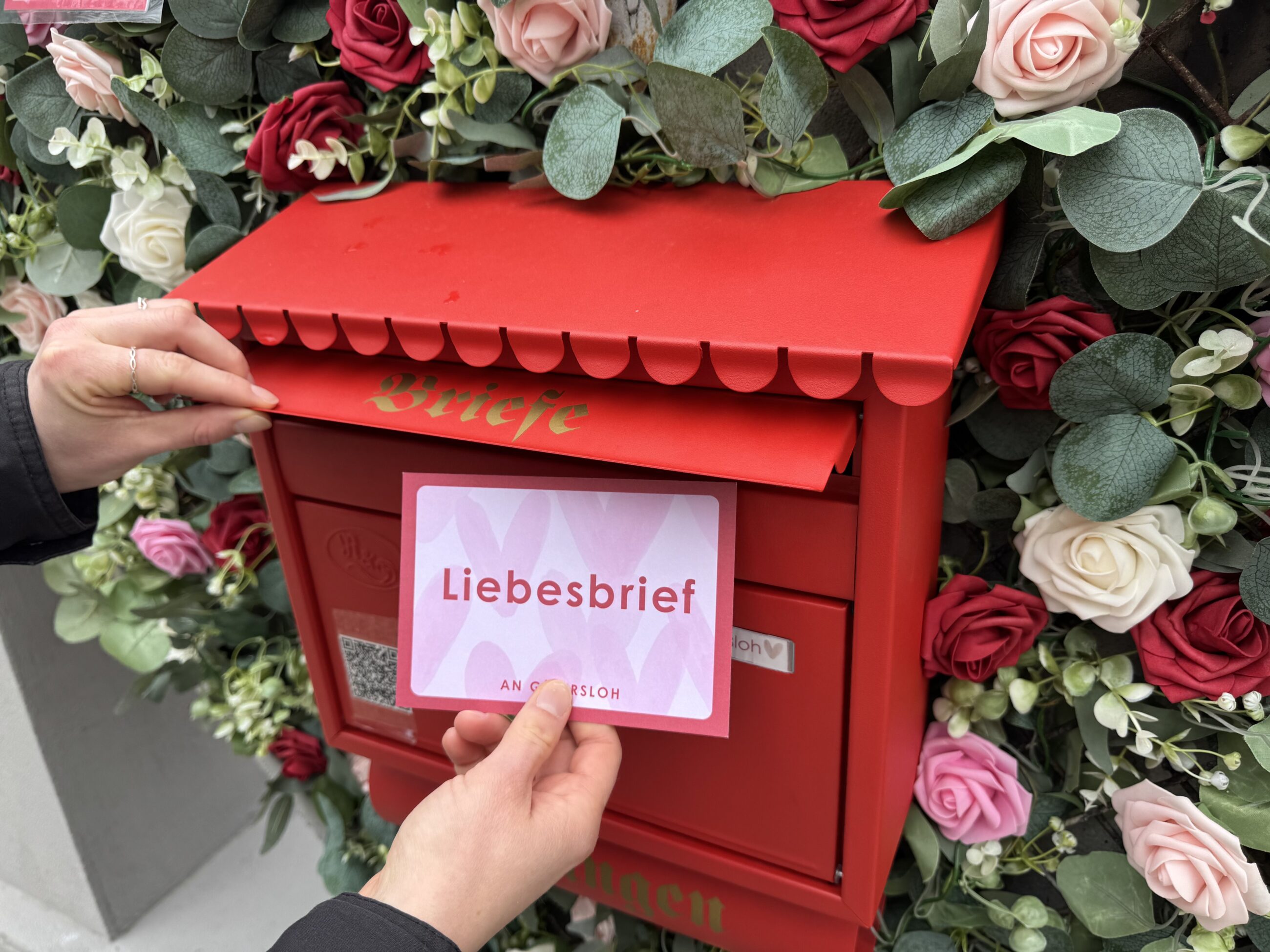 Unter dem Motto „Schreib Deinem Gütersloh einen Liebesbrief“ sind alle weiterhin eingeladen, die kleinen und großen Freuden des Lebens in Gütersloh zu teilen und so die liebenswerte Seite der Stadt sichtbar zu machen. Was macht Gütersloh liebens- und lebenswert? Der rote Liebesbriefkasten, eingebettet in das mit Blumen geschmückte „I Love GT“-Logo, steht weiterhin auf dem Rathausvorplatz und nimmt neue Einsendungen entgegen. Entsprechende Postkarten liegen dafür in der Tourist-Information aus. Wer möchte, kann seinen Liebesbrief außerdem per E-Mail an liebesbriefe@guetersloh.de senden oder direkt auf der Website www.stadt.gt/liebesbriefe eintippen.