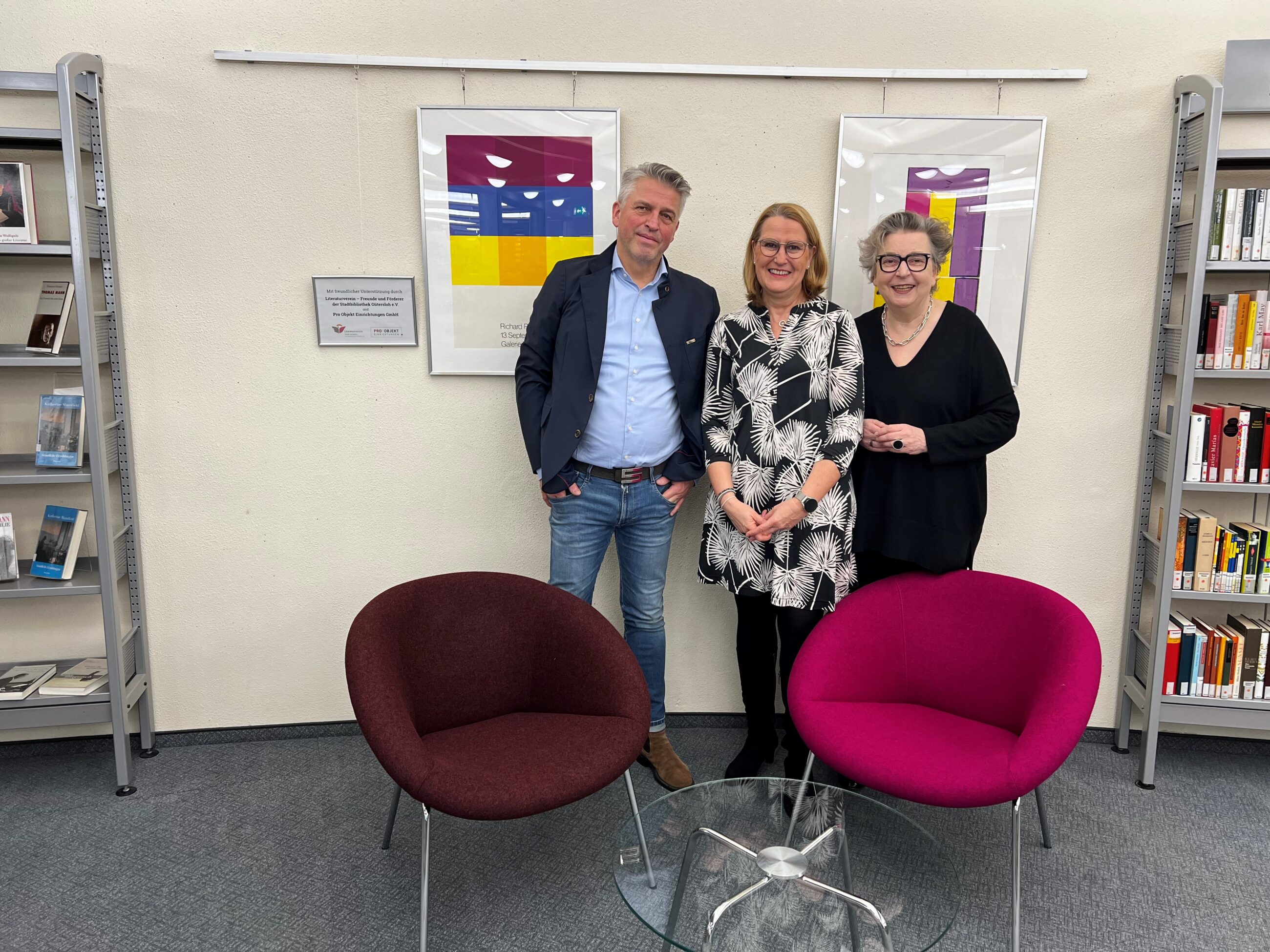 Ralf Demnick, Inhaber und Geschäftsführer von PRO Objekt, unterstreicht ebenfalls die Bedeutung der Bibliothek für die Stadt: „Als ‚dritter Ort’ ist sie eine große Bereicherung für Gütersloh. Gern unterstützen wir diesen besonderen Raum mit hochwertigen Möbeln, die zum Ankommen und Lesen einladen.“ Silke Niemann, Geschäftsführerin der Stadtbibliothek, weiß das engagierte Zusammenwirken für das Haus zu schätzen: „Wir freuen uns über die langjährige Partnerschaft mit dem Literaturverein, der uns nicht nur finanziell, sondern auch ideell unterstützt. Gemeinsam gestalten wir die Bibliothek als lebendigen Ort der Begegnung und des Austauschs – für alle Generationen und für ganz unterschiedliche Lesewelten.“
