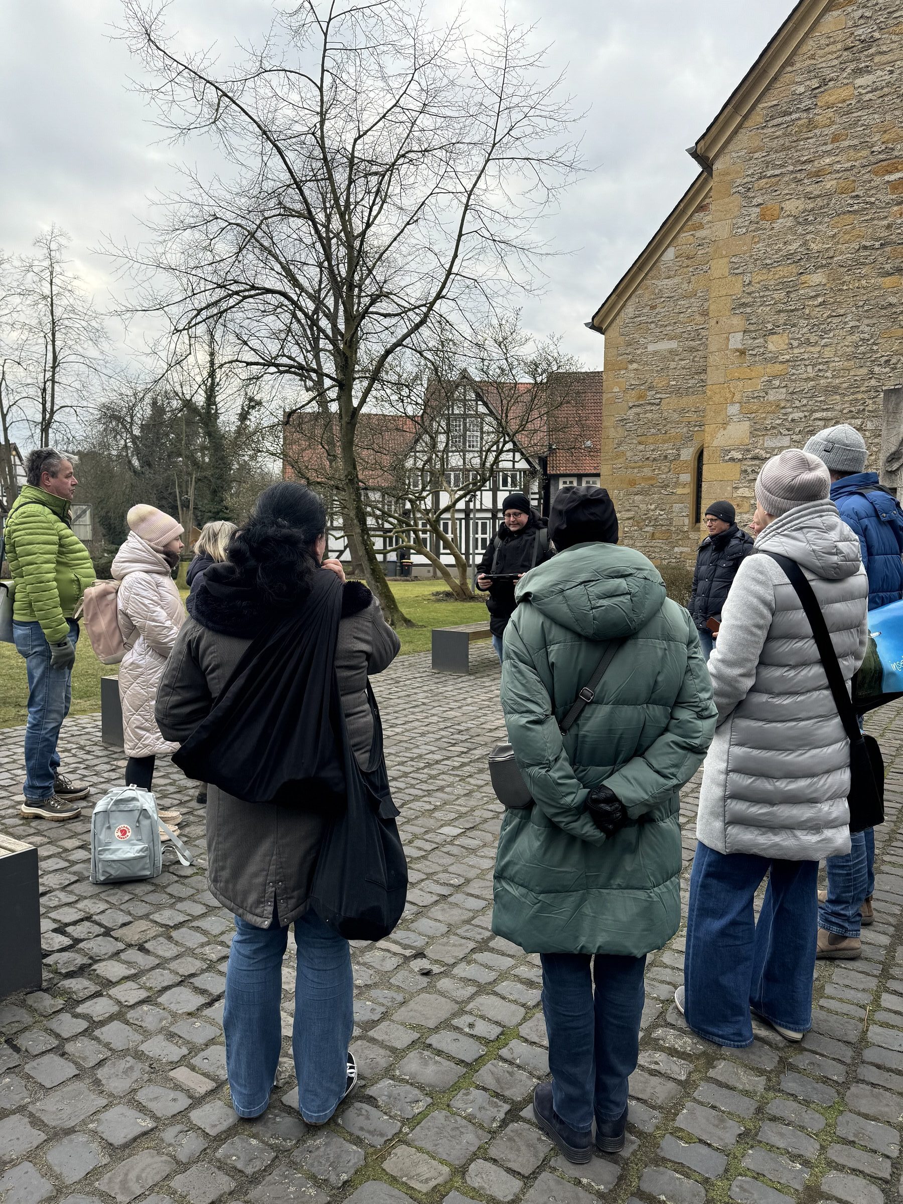 Das Interesse an der Stadtführer*innenausbildung war groß. Mehr als 30 Interessierte besuchten die Informationsveranstaltung im Sommer 2024. Doch die Anforderungen an die neuen Stadtführer*innen waren hoch: Neben Begeisterung für die Geschichte und Kultur von Gütersloh sollten Kandidat*innen Kommunikationsstärke und Freude am Umgang mit Menschen mitbringen. Zudem legten VHS und gtm Wert darauf, eine vielfältige Gruppe zusammenzustellen, die verschiedene Perspektiven und Erfahrungen in ihre Arbeit als Stadtführer*innen einbringen kann. Schließlich konnte der Lehrgang mit der maximalen Teilnehmer*innenanzahl von 15 motivierten Personen starten. Auch hinsichtlich der Geschlechterverteilung und Altersstruktur ergab sich in der Gruppe ein ausgewogenes Verhältnis, wodurch sich die Kooperationspartner vielseitige Tourformate und eine Ansprache vieler Zielgruppen erhoffen.