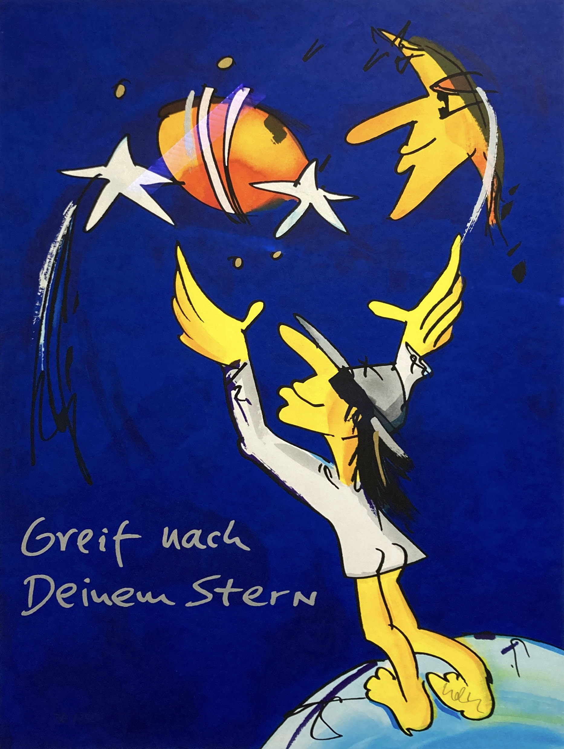 Unkonventionell wäre wohl ein passendes Adjektiv, um Udo Lindenberg zu beschreiben. Es versteht sich fast von selbst, dass ausgerechnet er auch beim Malen nicht viel mit Standards am Hut hat. Schon Mitte der 1990er-Jahre schuf er kleine Karikaturen, die er auf seine Autogrammkarten malte. Eine erste Ausstellung folgte 1996. Seine ganz eigene Lindenberg-Technik: Er experimentierte mit verschiedenfarbigen Likören als Malfarben und schuf auf diese Art seine berühmten „Likörelle“. Was manchen als skurrile Idee erscheint, hat sich bewährt – ebenso wie das nächtliche Spazierengehen Udos durch die menschenleere Stadt. Vielleicht, weil man dabei seinem Selbst meistens näherkommt als am Tag?