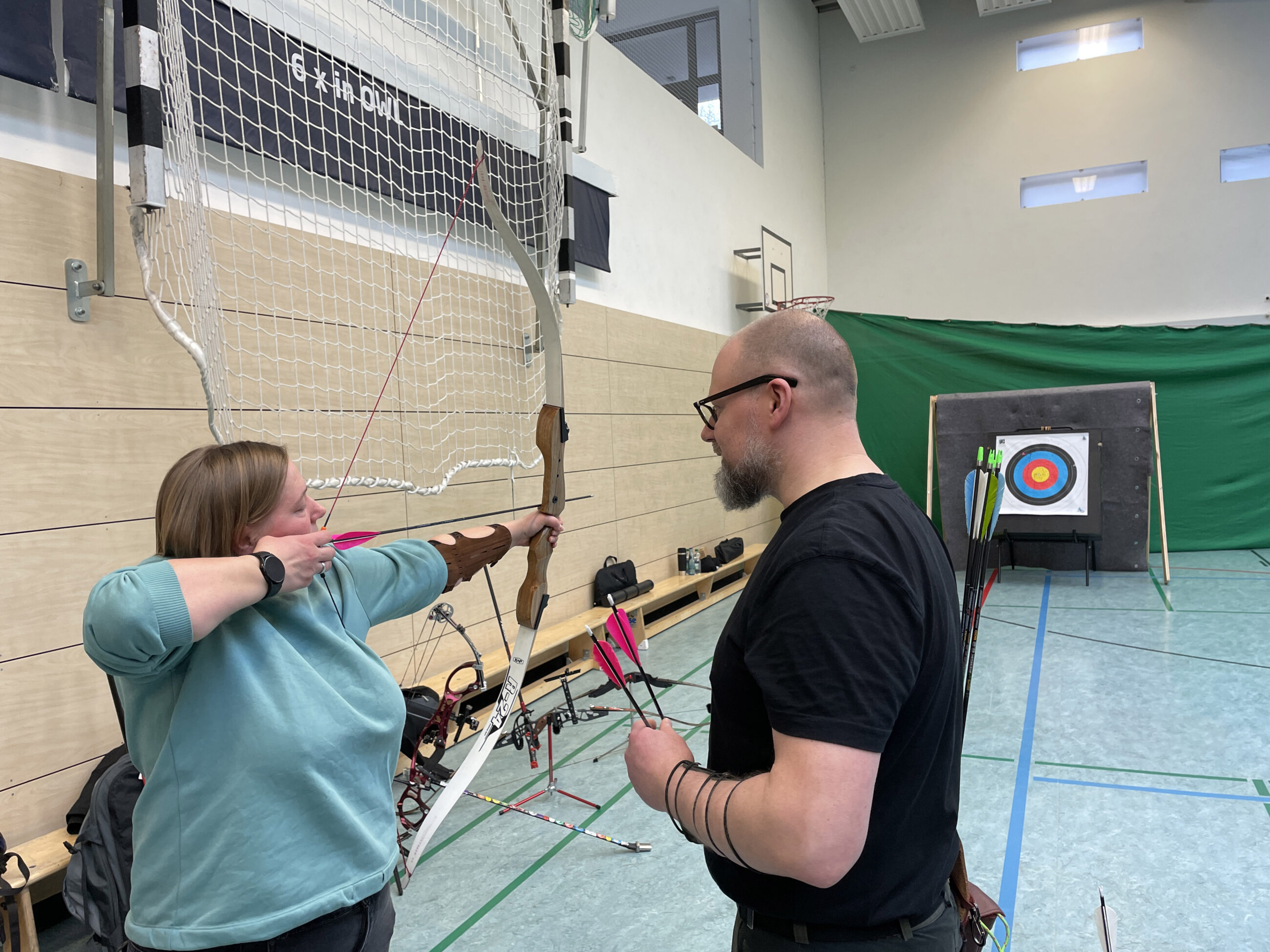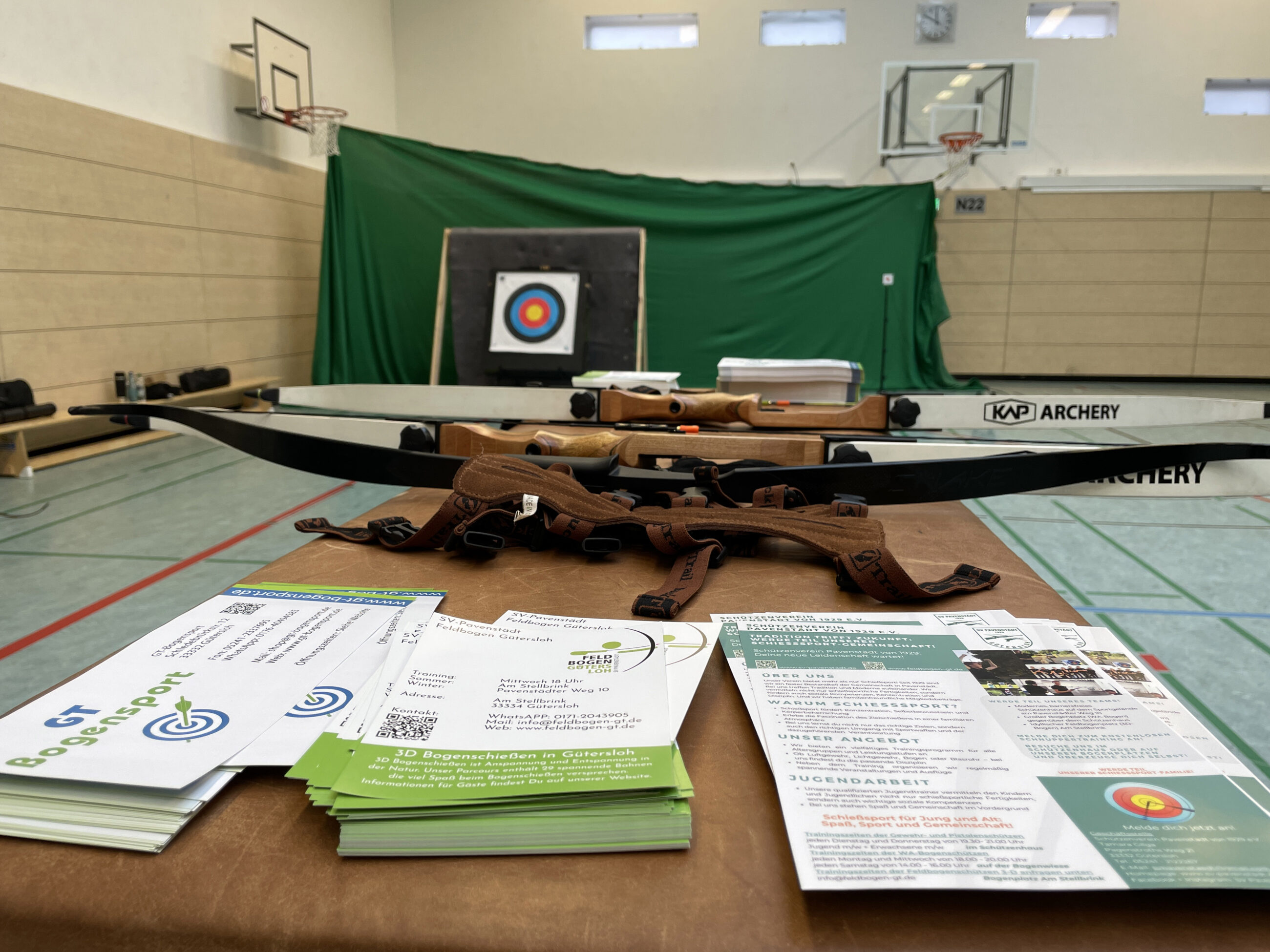 Ebenso begeistert vom vielfältigen Angebot an diesem Tag ist Gütersloherin Kathrin Neß. Sie denkt schon seit längerem darüber nach, einmal das Bogenschießen auszuprobieren – und fackelt nicht lang, als sie das Angebot beim Gütersloher Sporttag entdeckt. Wie auch viele andere an diesem Tag lässt sie sich einen Flyer der Feldbogenschützen mitgeben, mit dem Hinweis: „Mittwochs ist ab 18 Uhr freies Training.“ Dann geht es mit ihrer Tochter, die schon beim Kinderturnen mitgemacht hat, zum Schach.