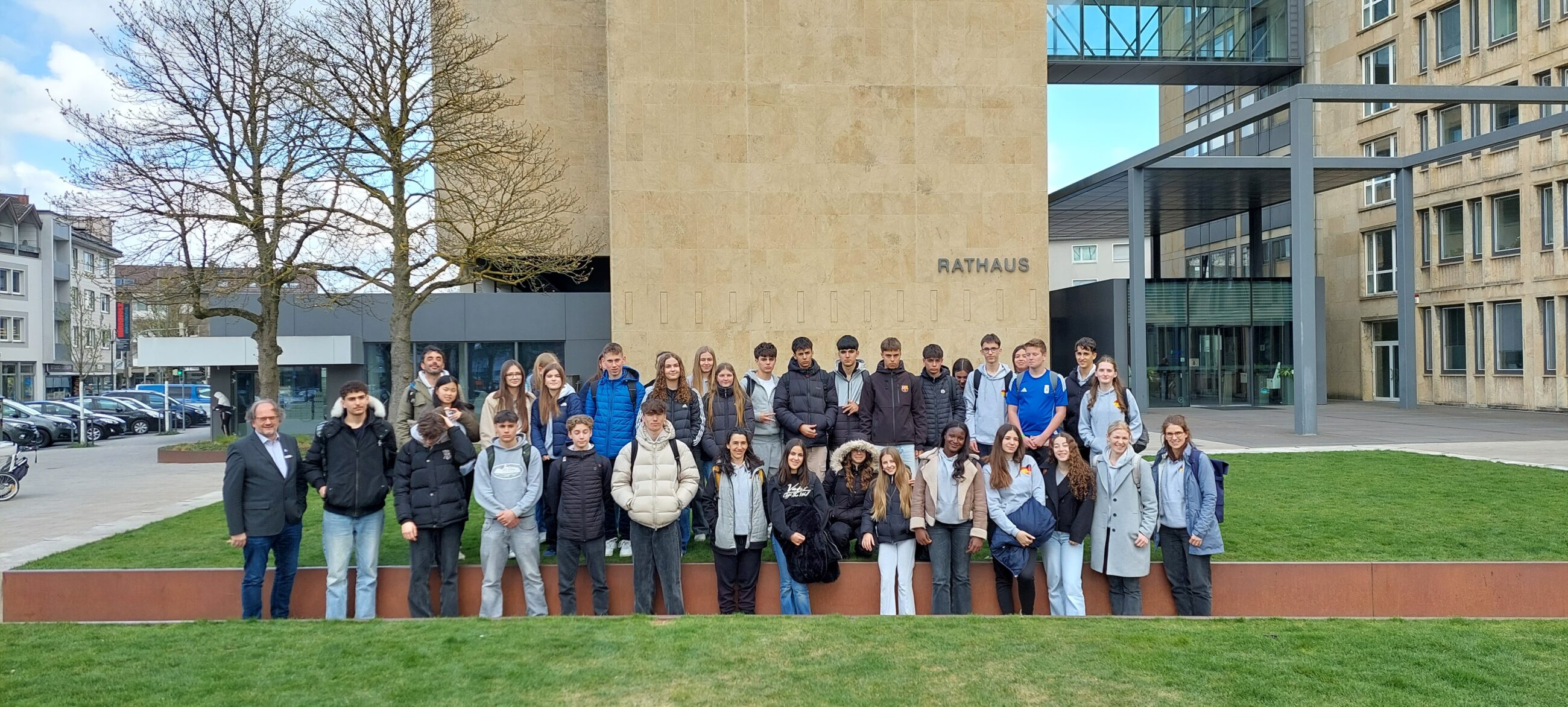 Gütersloh (gpr). Zwei spanische Schülergruppen haben Bürgermeister Matthias Trepper innerhalb einer Woche im Gütersloher Rathaus besucht. Im Rahmen ihrer Austauschprogramme mit dem Städtischen Gymnasium Gütersloh und der Geschwister-Scholl-Realschule erhielten die Jugendlichen spannende Einblicke in die Stadtverwaltung, das politische Geschehen sowie den Umweltschutz in Gütersloh.