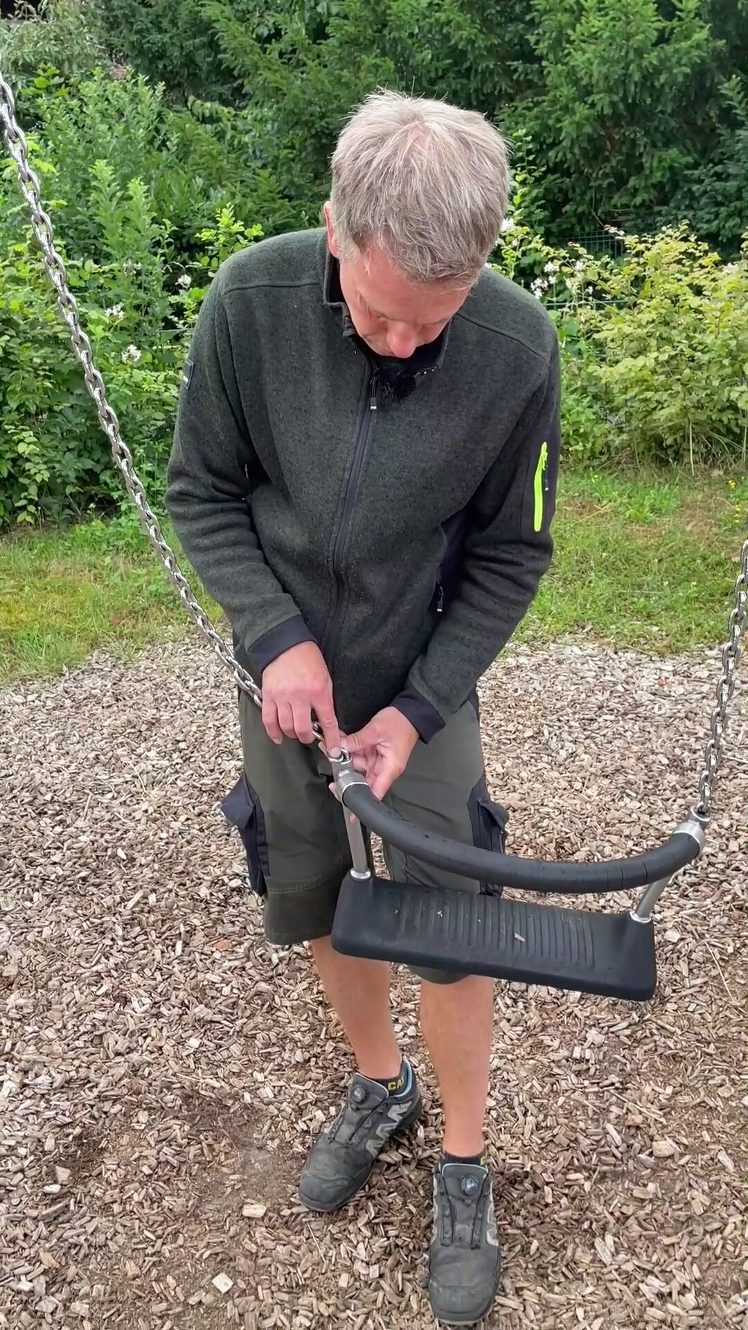 Auch die Kettenglieder der Schaukel werden genauestens auf Abnutzungserscheinungen geprüft. Foto: Stadt Gütersloh