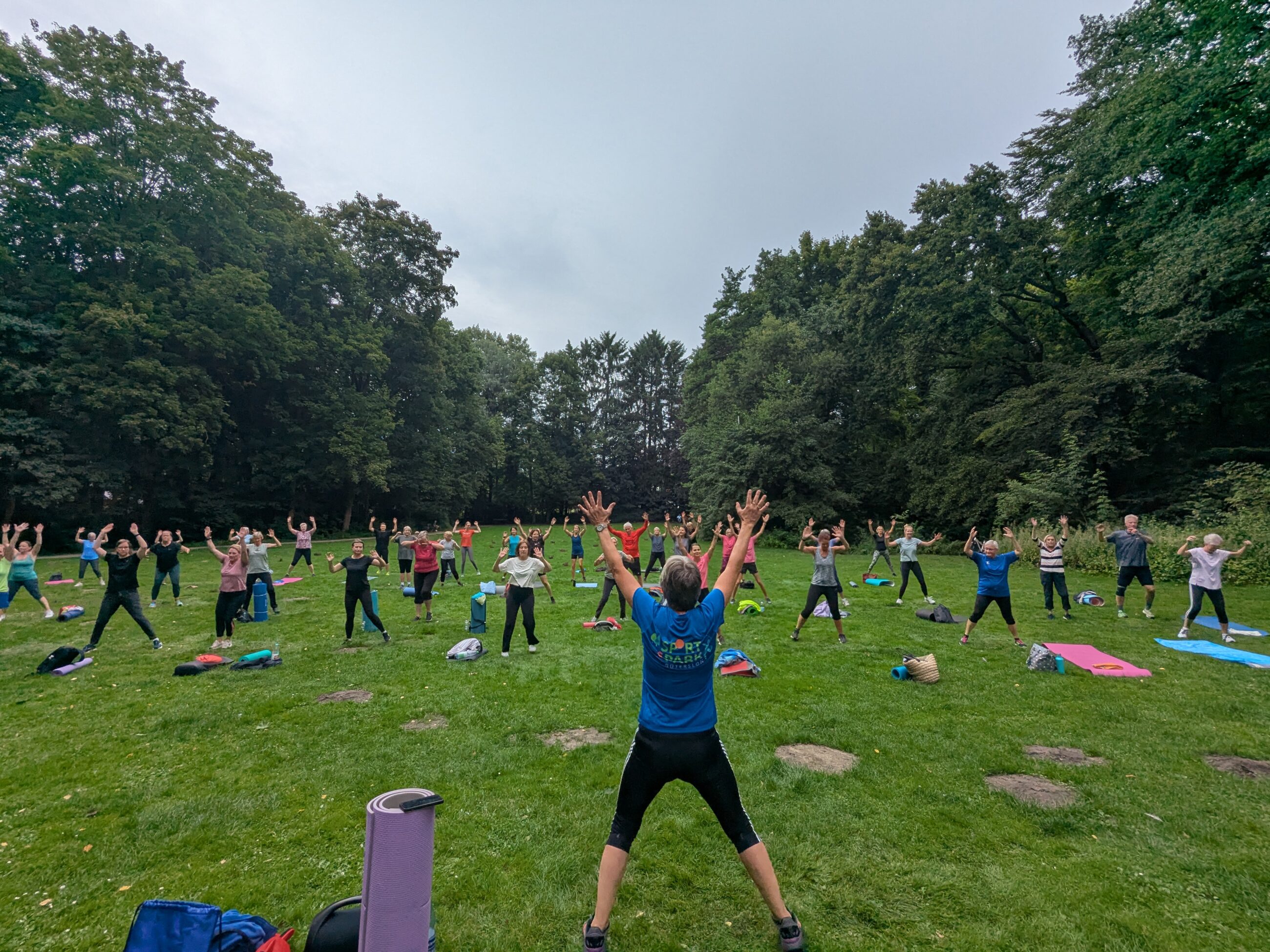 Auch in diesem Jahr waren die angebotenen Kurse generationsübergreifend gestaltet. Neben den traditionellen Uhrzeiten von 10 bis 11 Uhr und 18 bis 19 Uhr gab es in diesem Jahr Angebote für Kinder erstmals von 17 bis 18 Uhr, was bei vielen Familien großen Anklang fand. „An uns war der Wunsch nach etwas früheren Zeiten für die Kids herangetragen worden, was wir zusammen mit unseren Übungsleitungen natürlich gerne umgesetzt haben“, sagt Jennifer Jones und freut sich, dass bei „Family Fit“, der „Spielekiste“ oder „Spiel & Sport für Kids“ die Wiesen oft genauso voll waren wie bei den Morgen- und Abendkursen für Erwachsene.