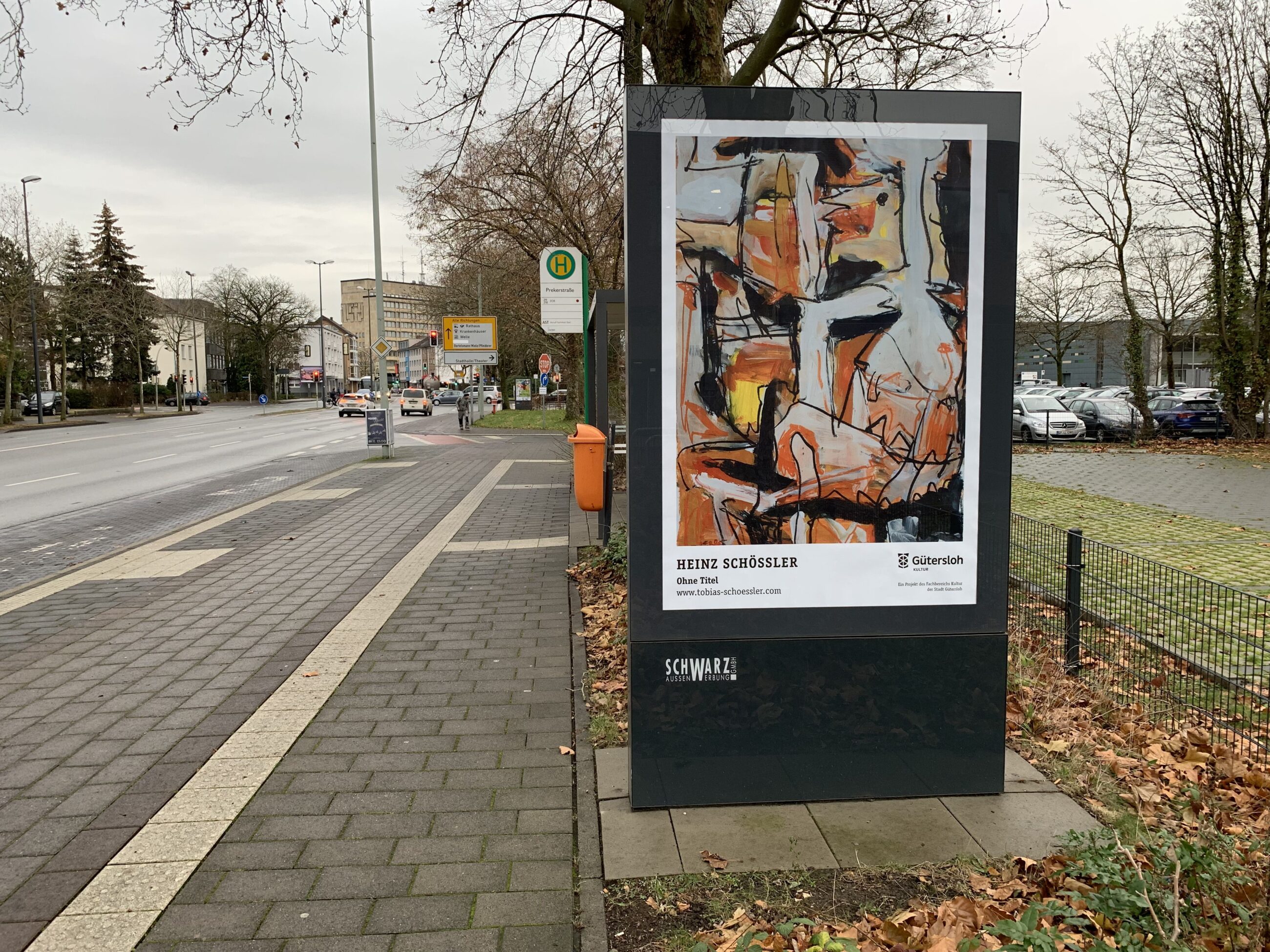 Wie in den vergangenen Jahren an dieser Bushaltestelle an der Friedrich-Ebert-Straße hängt bald wieder Kunst in den sogenannten City Lights. Foto: Stadt Gütersloh