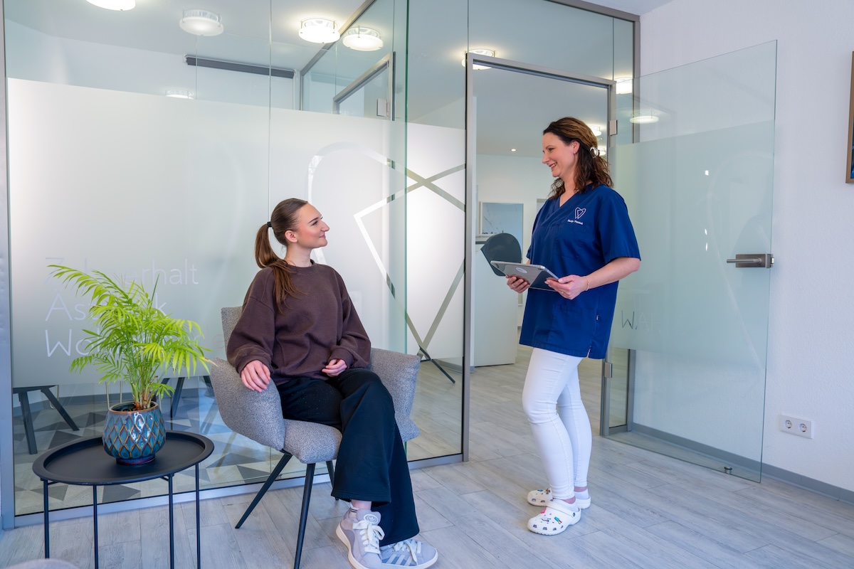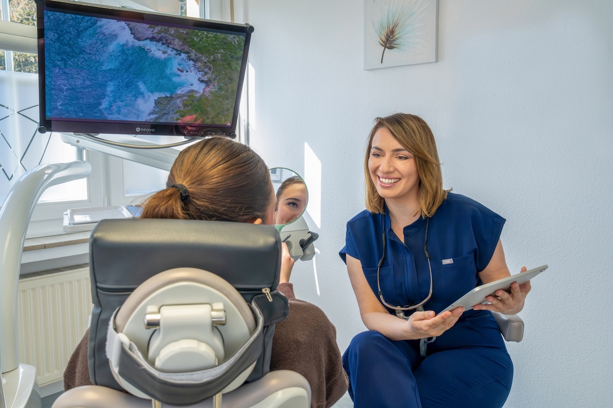 Mit guter Laune zum Zahnarzt gehen! Viele Menschen haben ein mulmiges Gefühl beim Zahnarzt. Die DentMIstas tun deshalb alles dafür, den Besuch in der Praxis DentMI so entspannt wie möglich zu gestalten…mit freundlicher Atmosphäre, Musik, beruhigenden Urlaubsvideos und einer herzlichen und humorvollen Begleitung.
