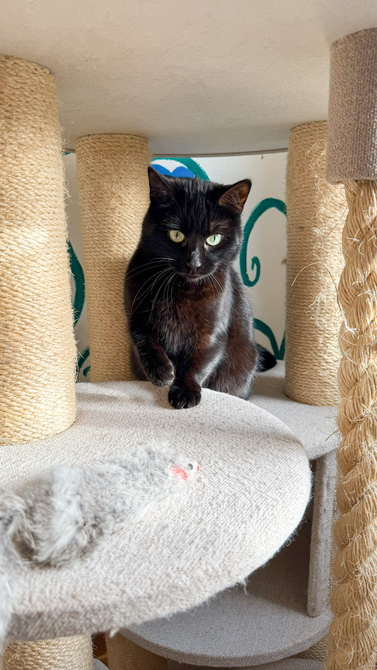 Smoky, 3 Jahre, kastrierte schwarze Katze, ist eine ruhige Wohnungskatze. Sie ist verträglich, sanft und genießt Nähe und Schmuseeinheiten in entspannter Atmosphäre.