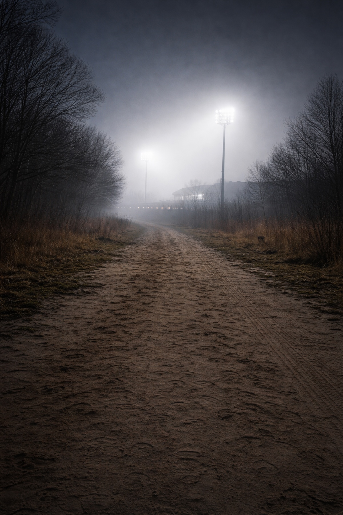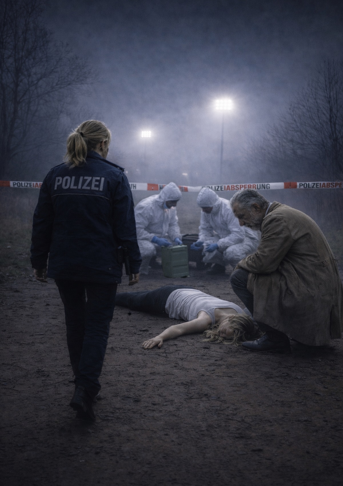 Karl kniete neben dem Körper. Wieder dieselbe Haltung. Die Hände auf dem Bauch. Die Augen geschlossen. Die Tote wirkte fast arrangiert. Lea flüsterte: »Das ist wieder das Muster.« Karl sah zum Stadion und stand lange in seinen Gedanken versunken am Rand des Parkplatzes, während die Spurensicherung arbeitete und die Flutlichter den Schleichweg in ein milchig weißblaues Licht tauchten.