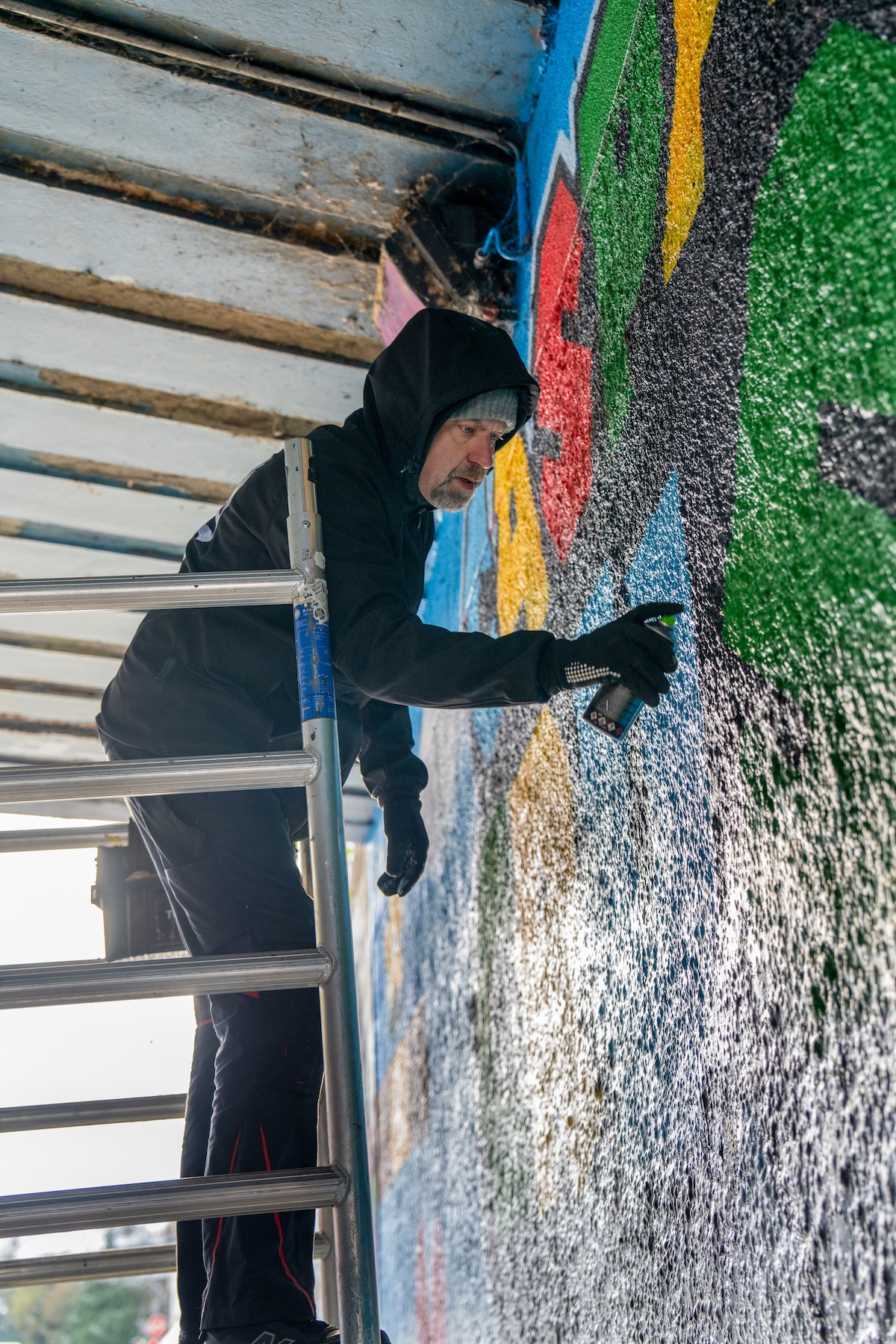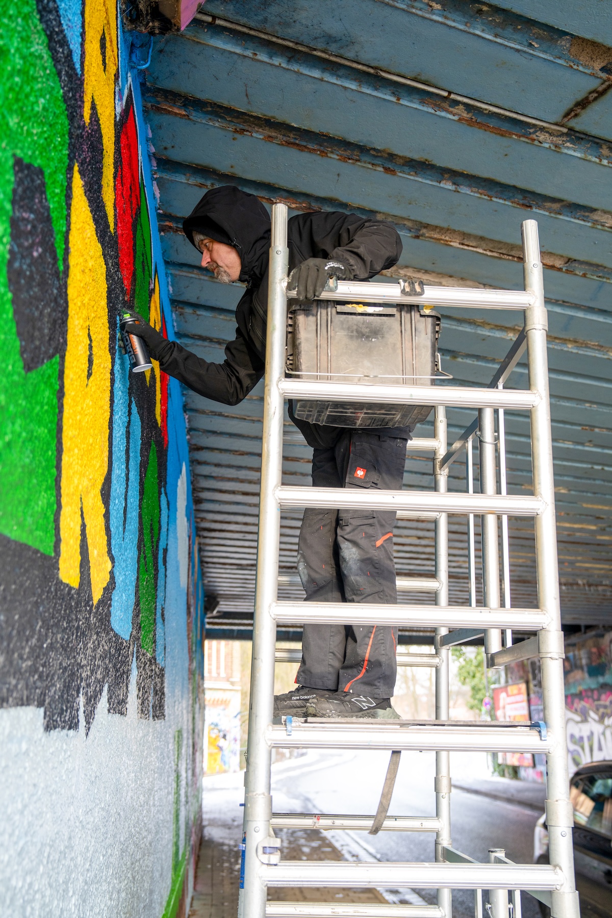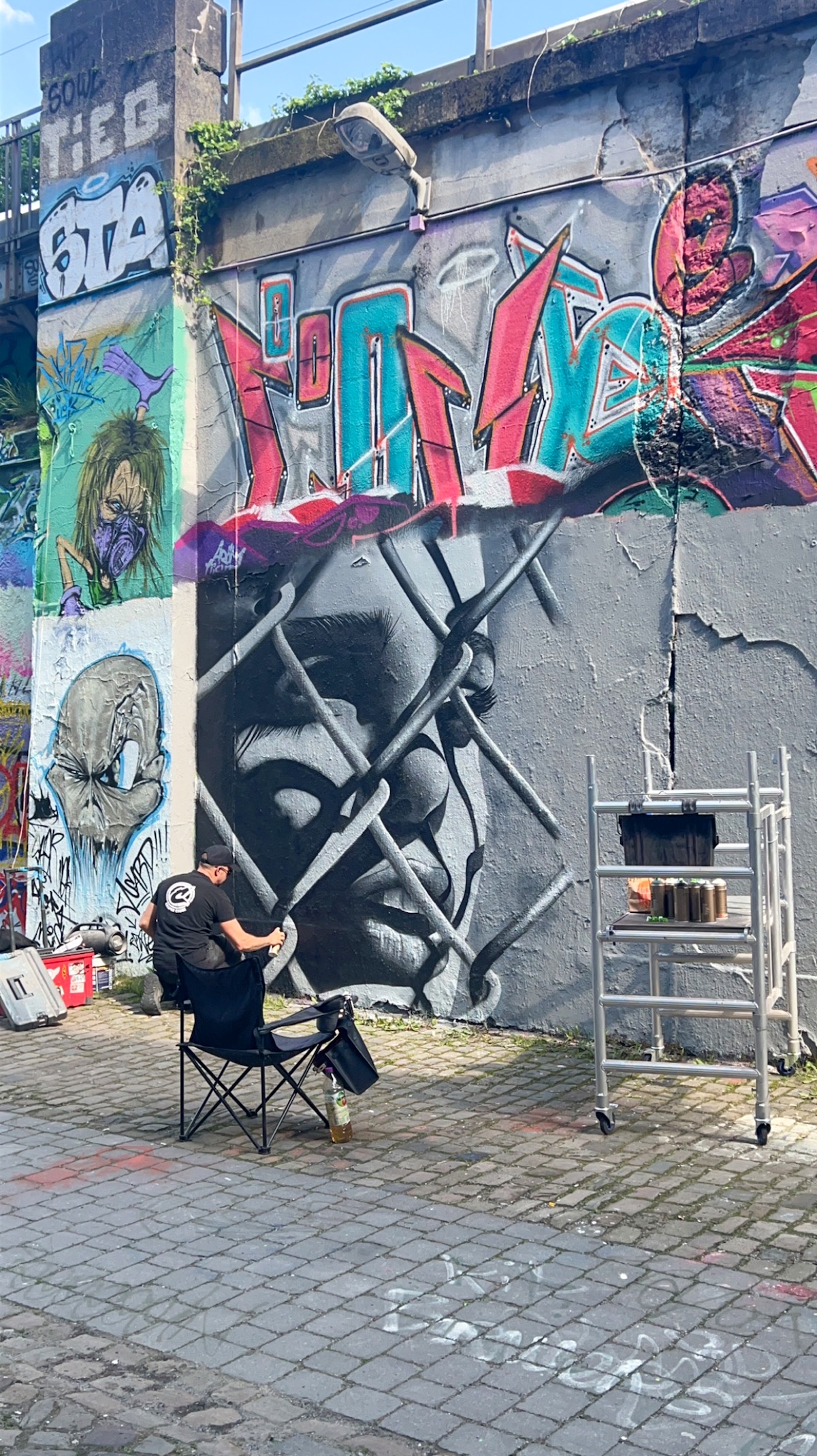 Sein großer Traum sind riesige Fassaden – Hochhäuser, Industriegebäude, Flächen von 30 bis 50 Metern Höhe. Orte, die sichtbar sind und das Stadtbild nachhaltig verändern. Denn Farbe, so seine Erfahrung, verändert nicht nur Wände, sondern auch das Gefühl der Menschen.