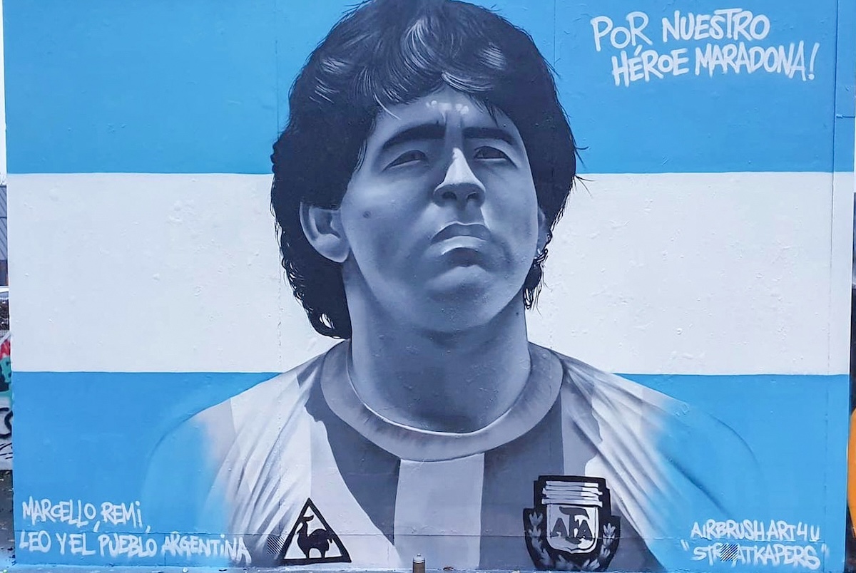Foto: Porträt Freie Graffiti zum Gendenken Diego Maradona Skatepark Amersfoort (Niederlande) Freies Graffiti mit meinem Künstlernamen CRUSE in Berlin (Deutschland) Graffiti-Jams