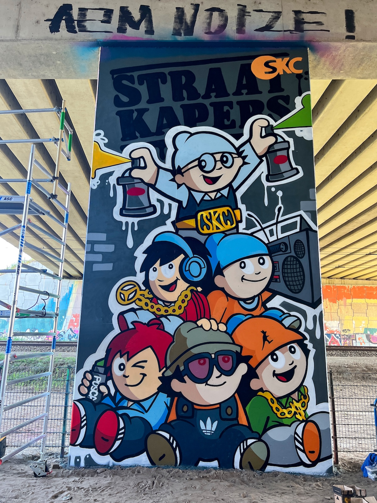 Foto: Graffiti-Jams am HOF Ede (Niederlande), Freie Graffiti von der Mainzelmännchen gemacht zusammen mit der STRAATKAPERS Crew