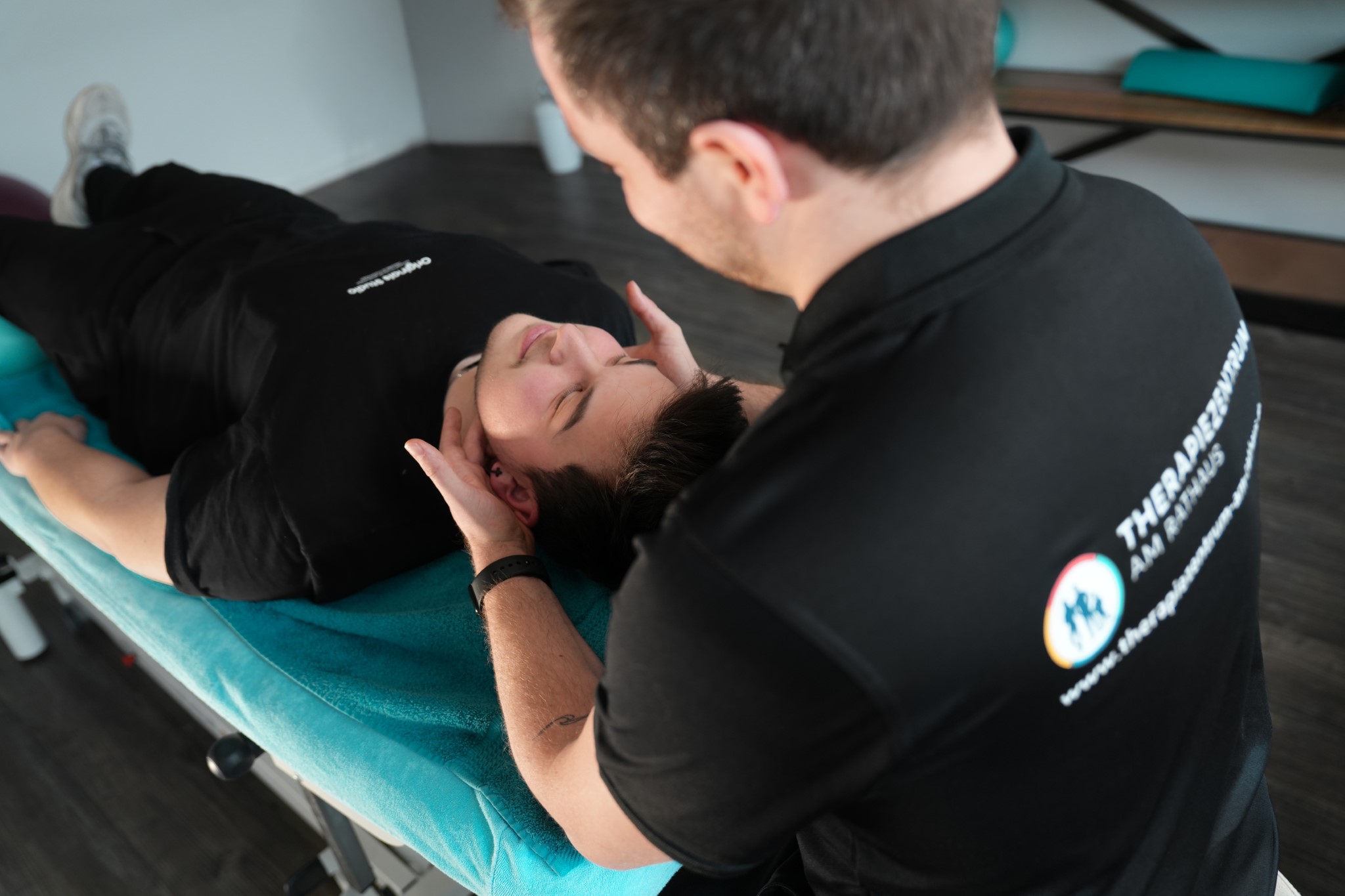 Das »Therapiezentrum am Rathaus« bietet Euch eine Vielzahl an Therapieformen und Gesundheits-kursen, immer maßgeschneidert und individuell für Euren jeweiligen Behandlungsbedarf. Heute möchten wir Euch etwas mehr über die Craniomandibuläre Dysbalance bzw. die Kiefergelenksbe-handlung in der Physiotherapie erzählen. Was ist das genau und wie wird sie behandelt? Wir beglei-ten heute den sympathischen Simon Klaß, 33 Jahre - ein hervorragender Manualtherapeut aus Lei-denschaft – in die Behandlung. Seit Januar ergänzt er das Team von Chris Vormfenne an der Berli-ner Str. 83-85 in Gütersloh.