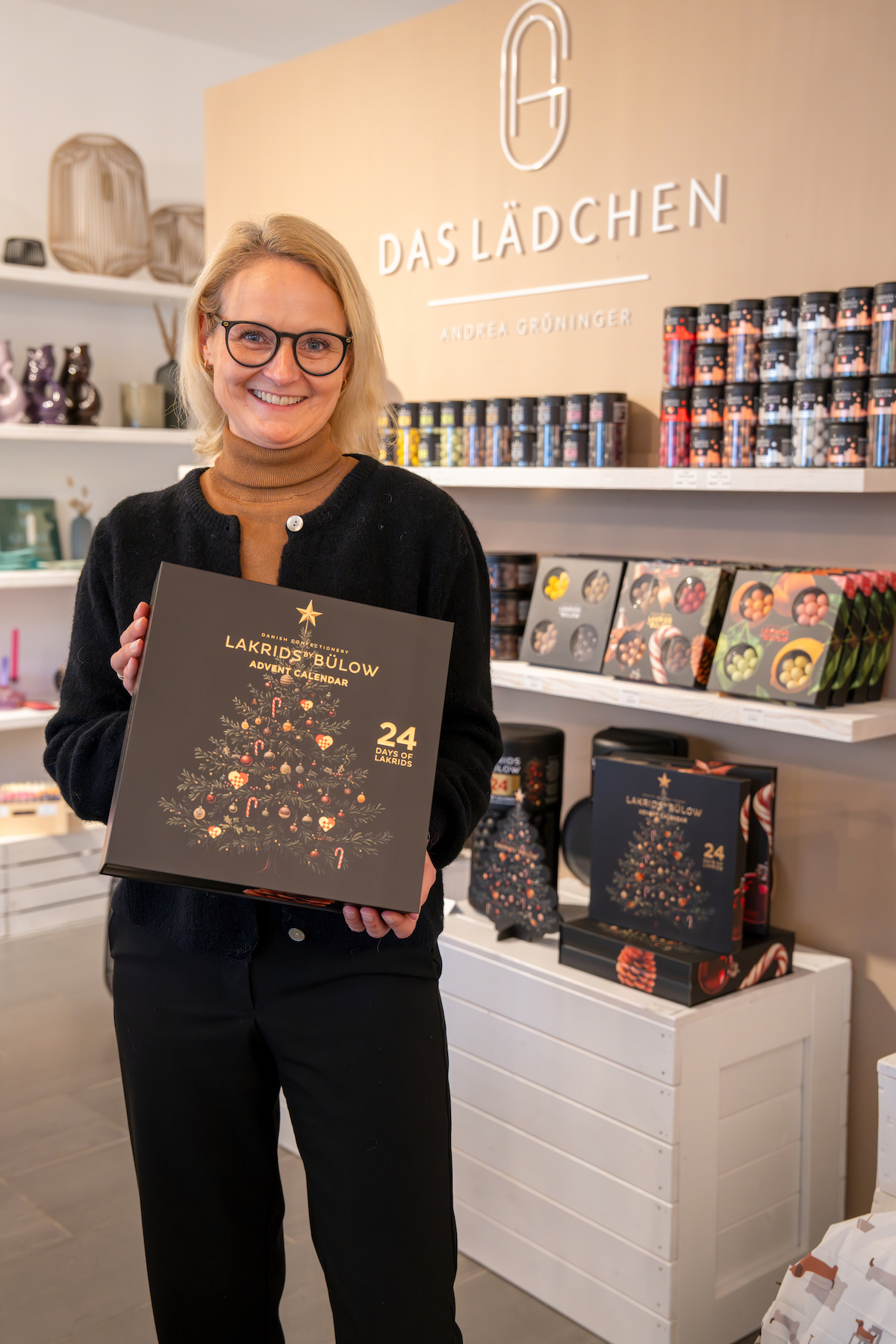 Im neuen Concept Store von Andrea Grüninger »Das Lädchen« wimmelt es nur so vor Geschenkideen! Im liebevoll ausgewählten Sortiment findet sich einfach alles: Ob für Feinschmecker, mit italienischer Feinkost, Pralinen, edlen Likören oder Wein, ob für Modeliebhaberinnen mit edlem Kaschmir, Schmuck, kuscheligen Cardigans, Haargummis oder Socken, oder ob für Designliebhaber ausgewählte Gläser und zahlreiche Dekoobjekte, wie Vasen und vieles mehr. Im Lädchen zu stöbern ist auf jeden Fall immer eine gute Idee! Das Beste: die Papeterie gibt’s auch gleich dazu. Andreas Tipp für Dezember ist der sagenhaft leckere Adventskalender von Lakrids by Bülow.