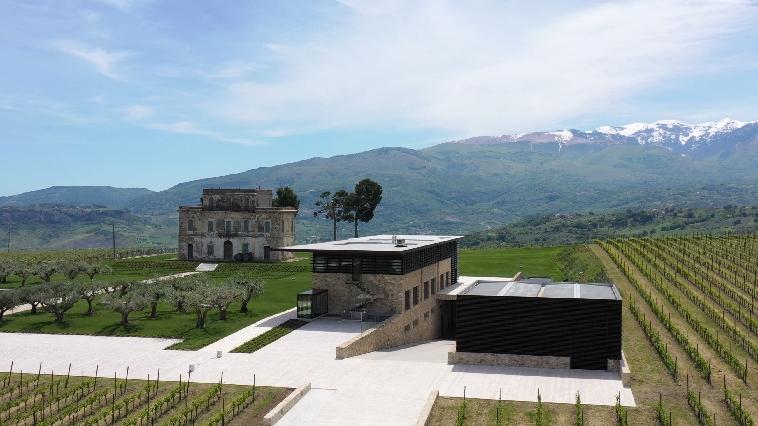 Und diese haben wir nicht »irgendwo«, sondern auf dem bekannten italienischen Weingut »Podere Castorani« von Jarno & Enzo Trulli. Wir befinden uns in der Provinz Pescara, Nähe Alanno. Hier steht ein zauberhaftes historisches Anwesen aus dem Jahr 1793, das durch Enzo Trulli (Vater des Rennfahrers Jarno Trulli), Bruno & Lucio Cavuto revitalisiert wurde. Eingebettet in die malerische Landschaft mit Zypressen und Olivenhainen befindet sich direkt daneben das hochmoderne Weingut mit seiner Produktionsanlage in Sandsteinoptik. Die Philosophie von Castorani: die Verbindung von Tradition und Nachhaltigkeit – Weine, die regionaltreu, handwerklich und qualitätsbewusst produziert werden.