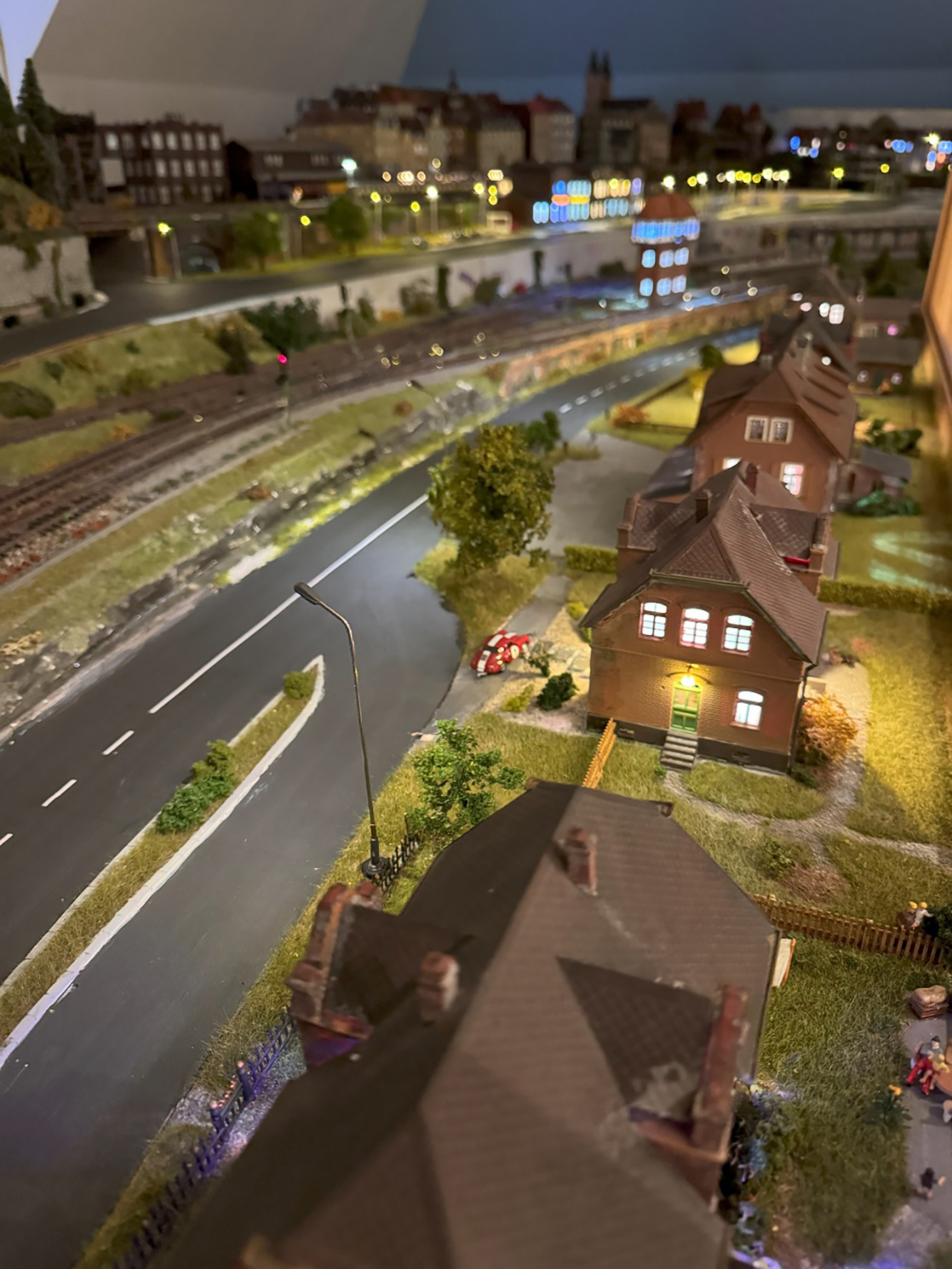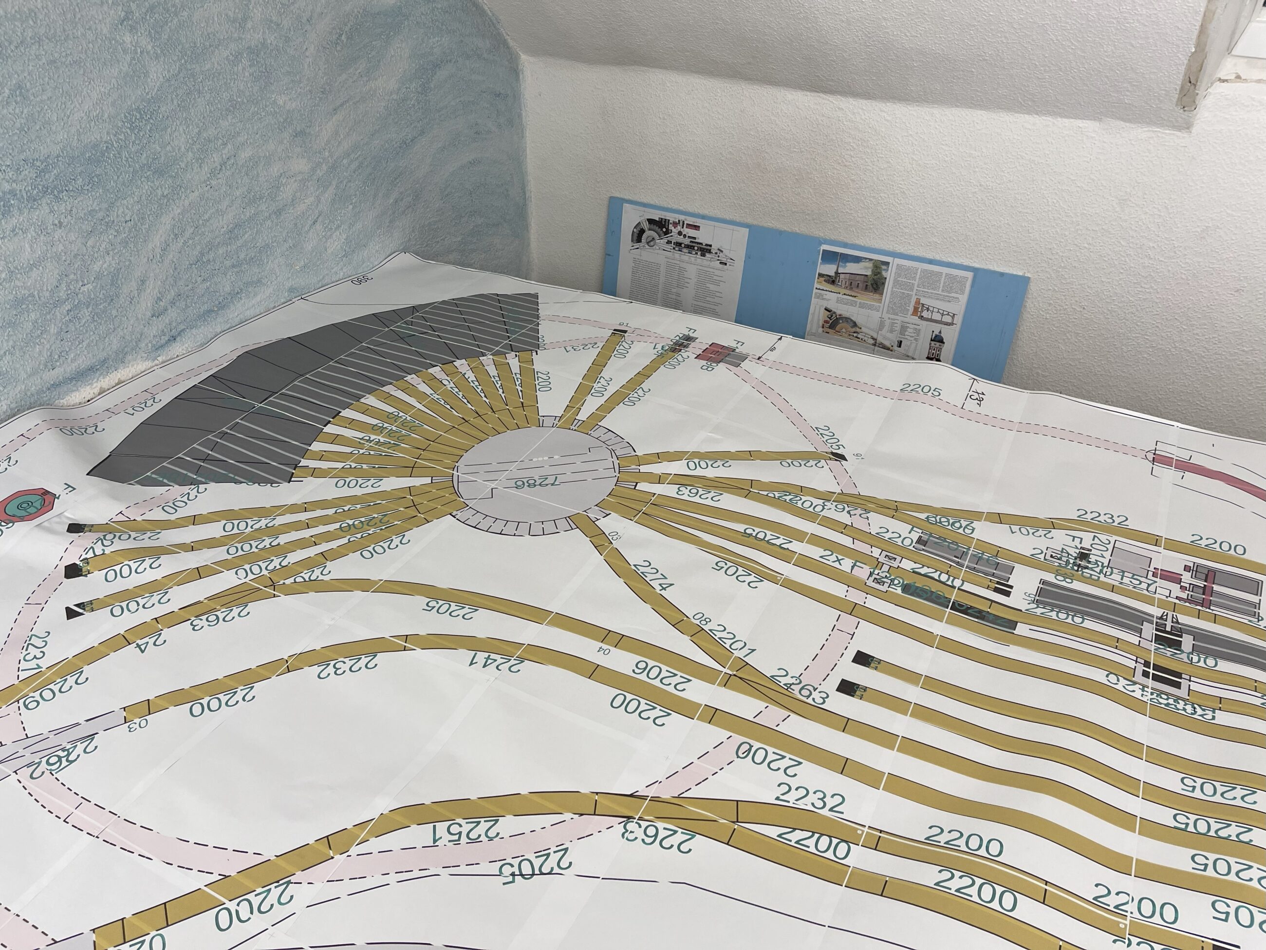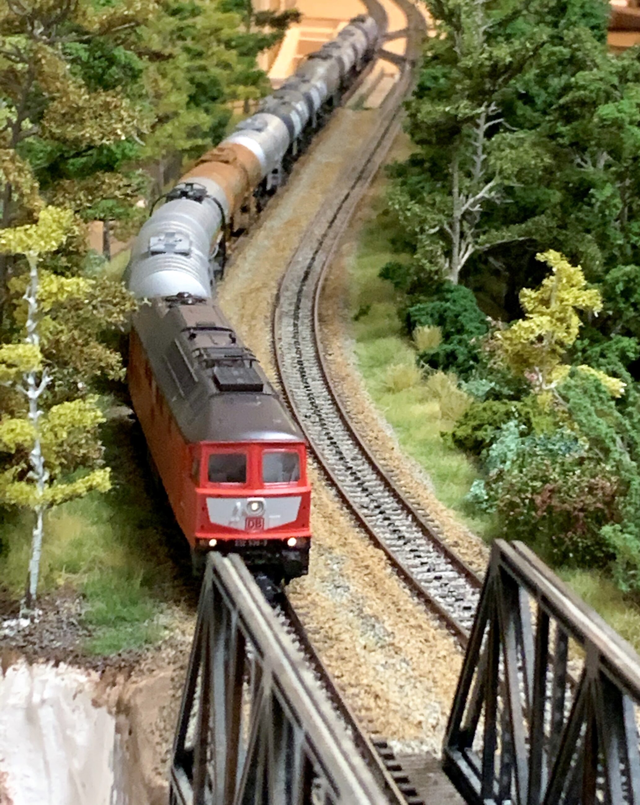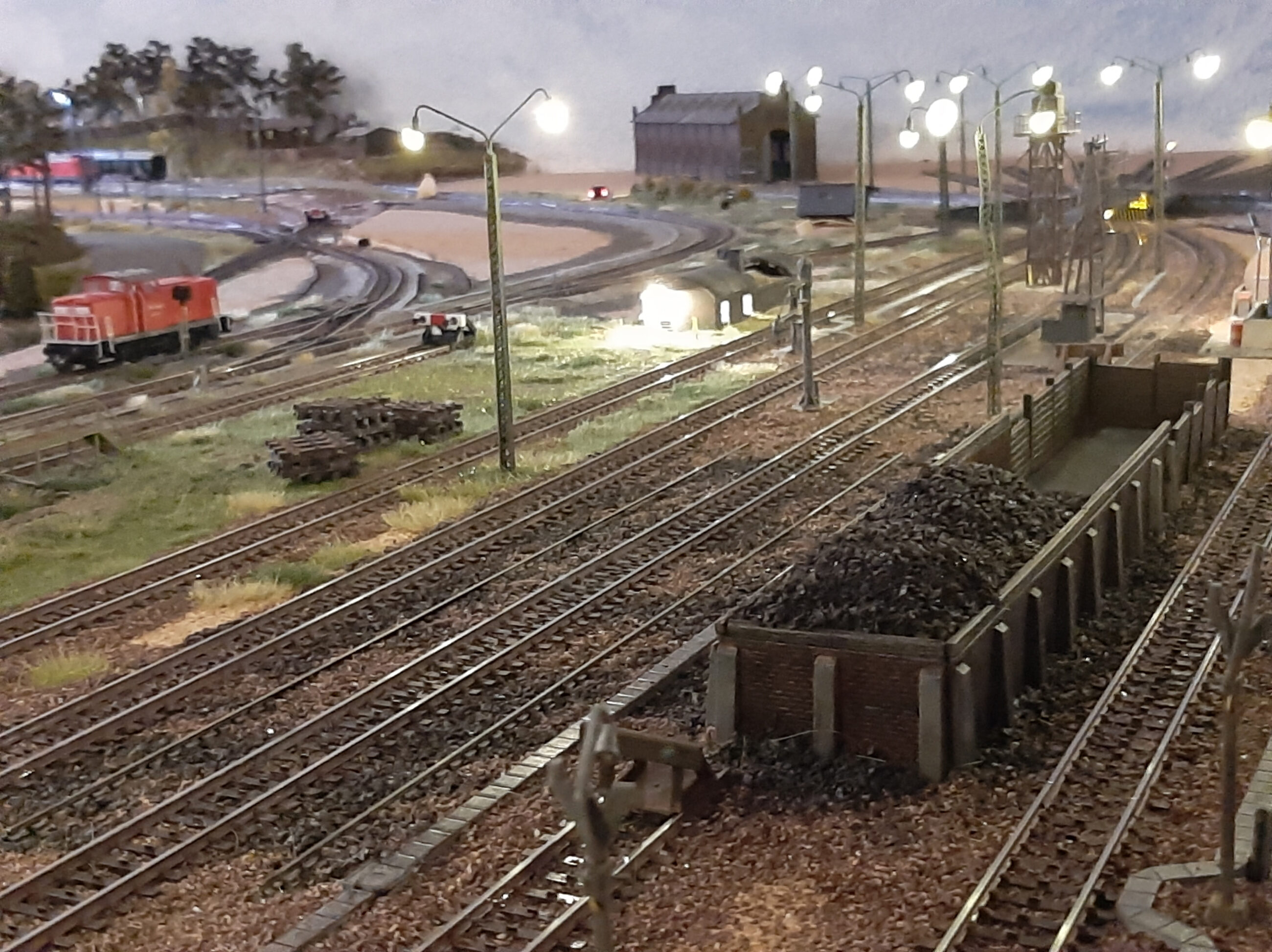 Die N-Anlage erlaubt den Einsatz von 20 automatisierten Zügen und enthält mehrere Bahnhöfe, Brücken und Industrieanschlüsse. Aktuell zwar noch im absoluten Rohbau sind jedoch noch technische Details zu sehen welche nach einer landschaftlichen Ausgestaltung nur noch zu erahnen sind.