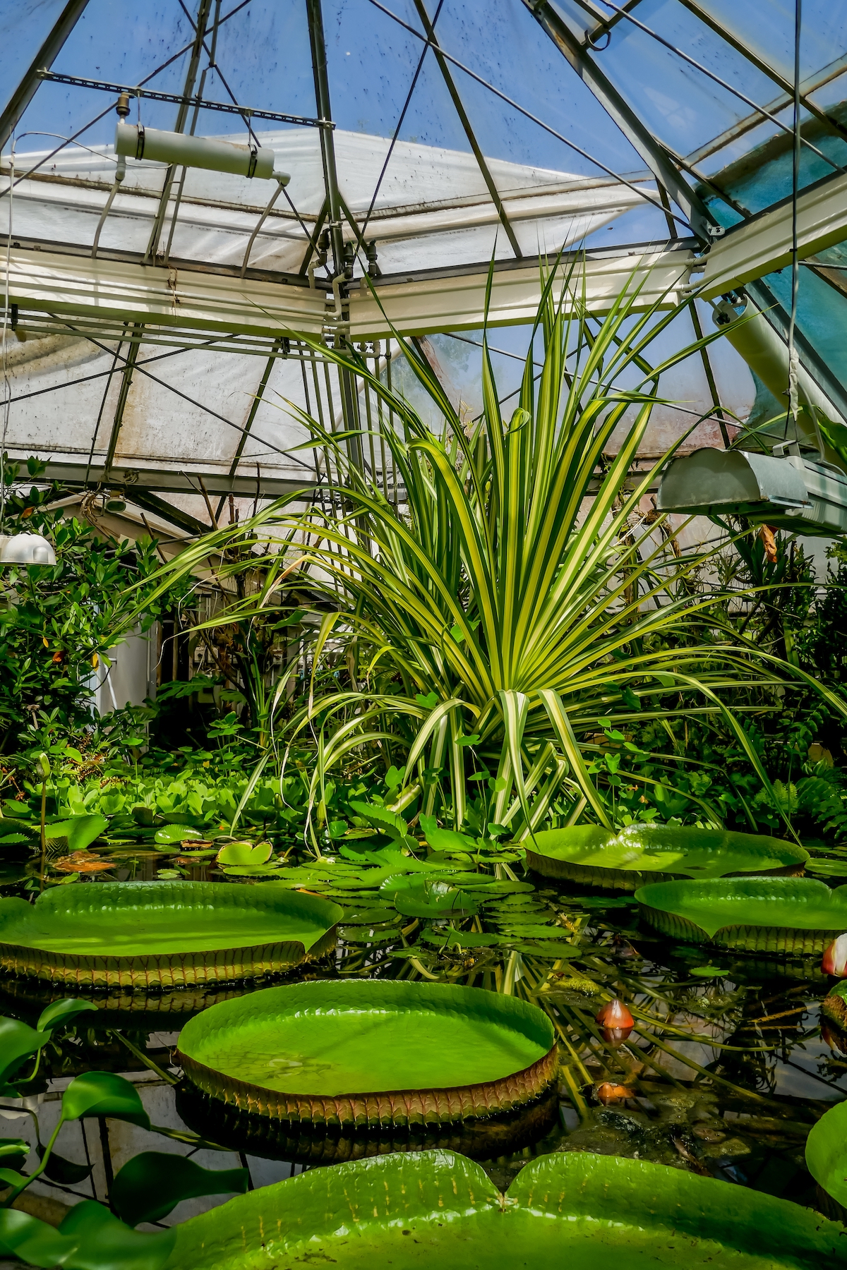 Versteckt im Victoria-Haus, einem achteckigen Gewächshaus, befindet sich eine der faszinierendsten Attraktionen des Füvészkert: die Riesen-Amazonas-Seerosen (Victoria amazonica). Ihre mächtigen, tellerförmigen Blätter können bis zu 1,5 Meter Durchmesser erreichen und sind stark genug, um das Gewicht eines Kindes zu tragen. Besonders eindrucksvoll ist ihre seltene Blüte, die sich