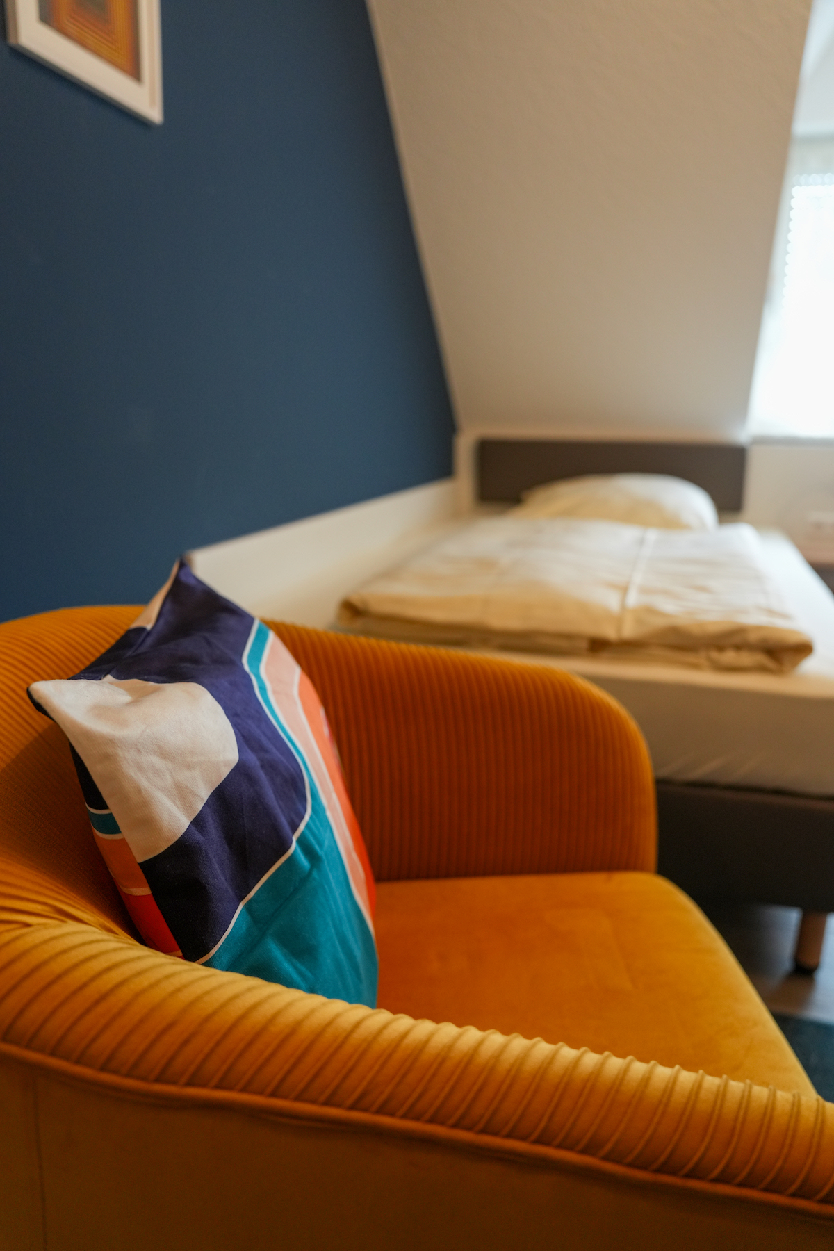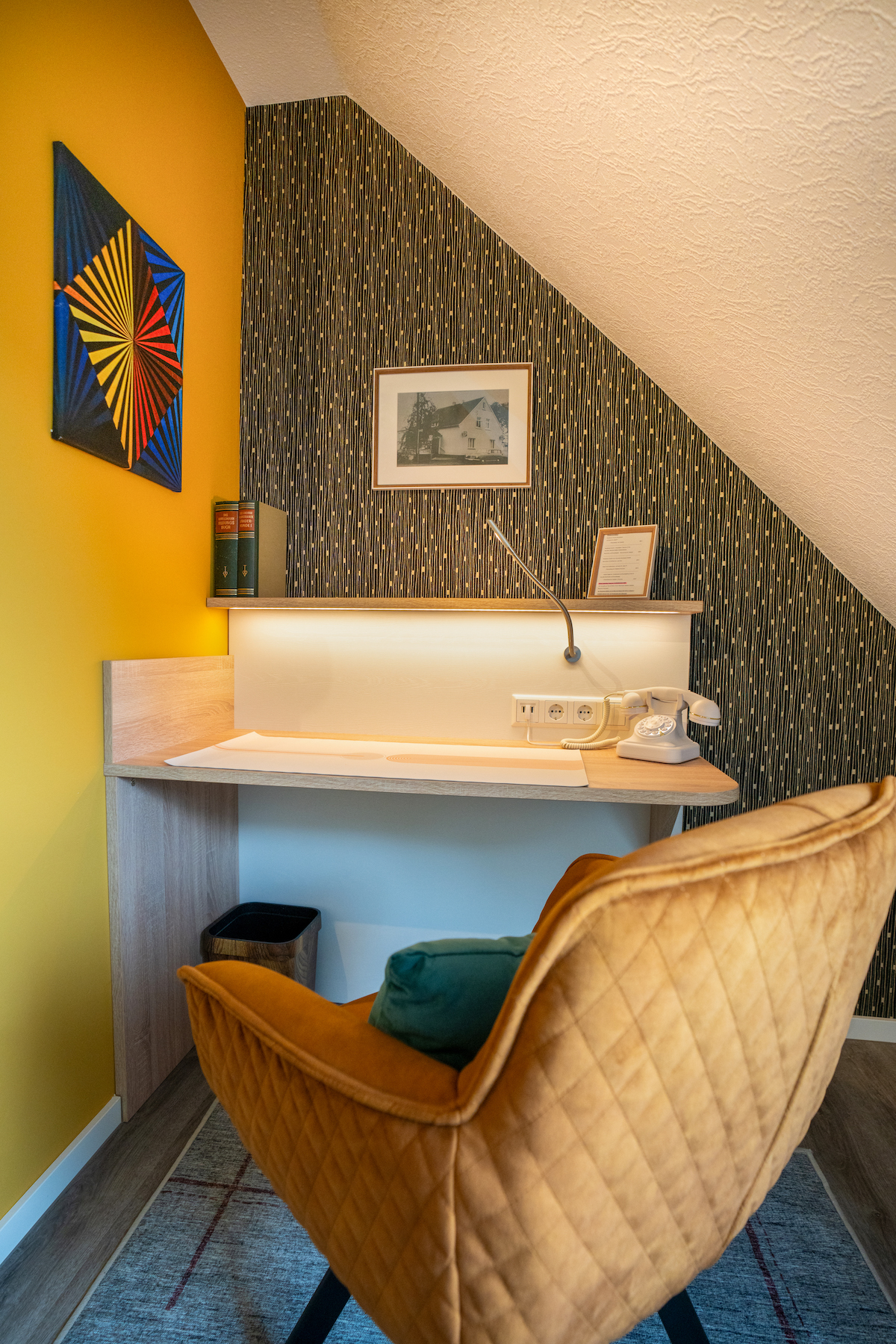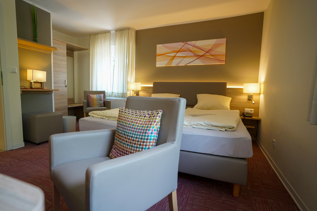 MODERNE TRIFFT TRADITION UND GÄSTE FÜHLEN SICH ZUHAUSE - STYLISCHE ZIMMER MIT GESCHICHTE Alt im Namen, modern im Herzen: Wer heute ein Zimmer im Altdeutschen Hof bucht, wird überrascht. Keine Einheitsmöbel, keine austauschbare Hotelatmosphäre – sondern Räume, die ihre eigene Sprache sprechen. Da steht ein Lampenschirm, der Geschichten flüstert, dort liegt ein Buch, das an die Bertelsmann-Vergangenheit erinnert.