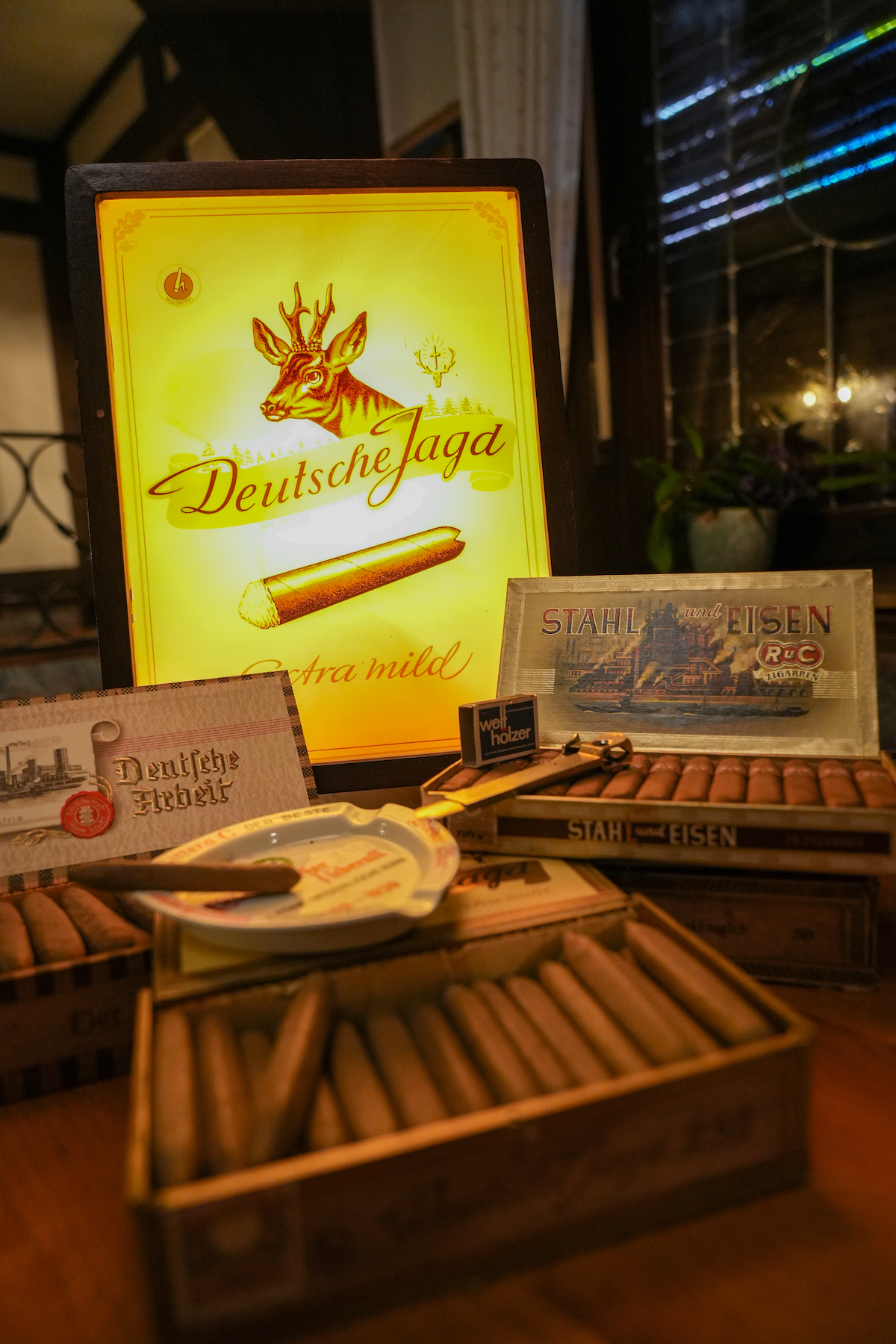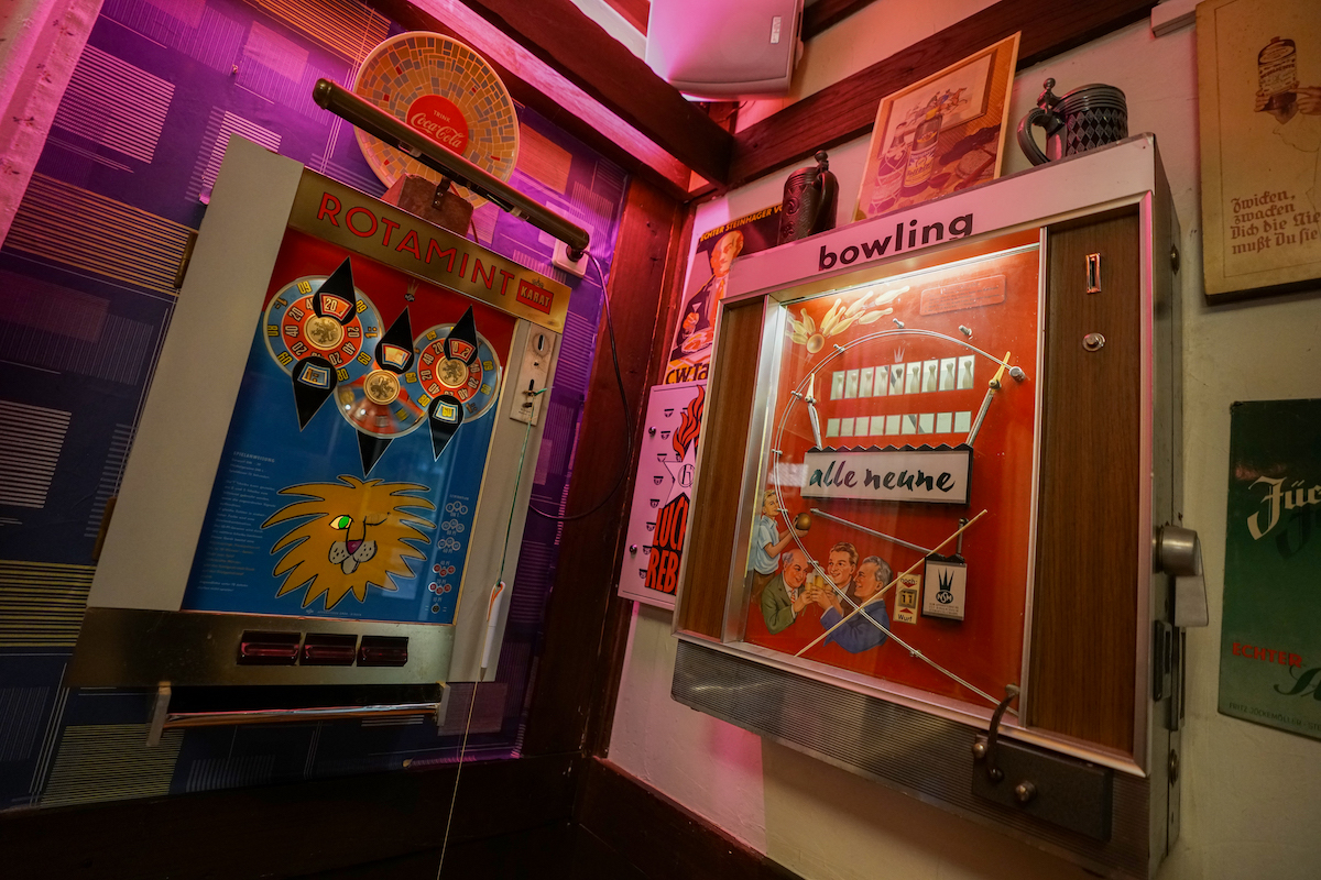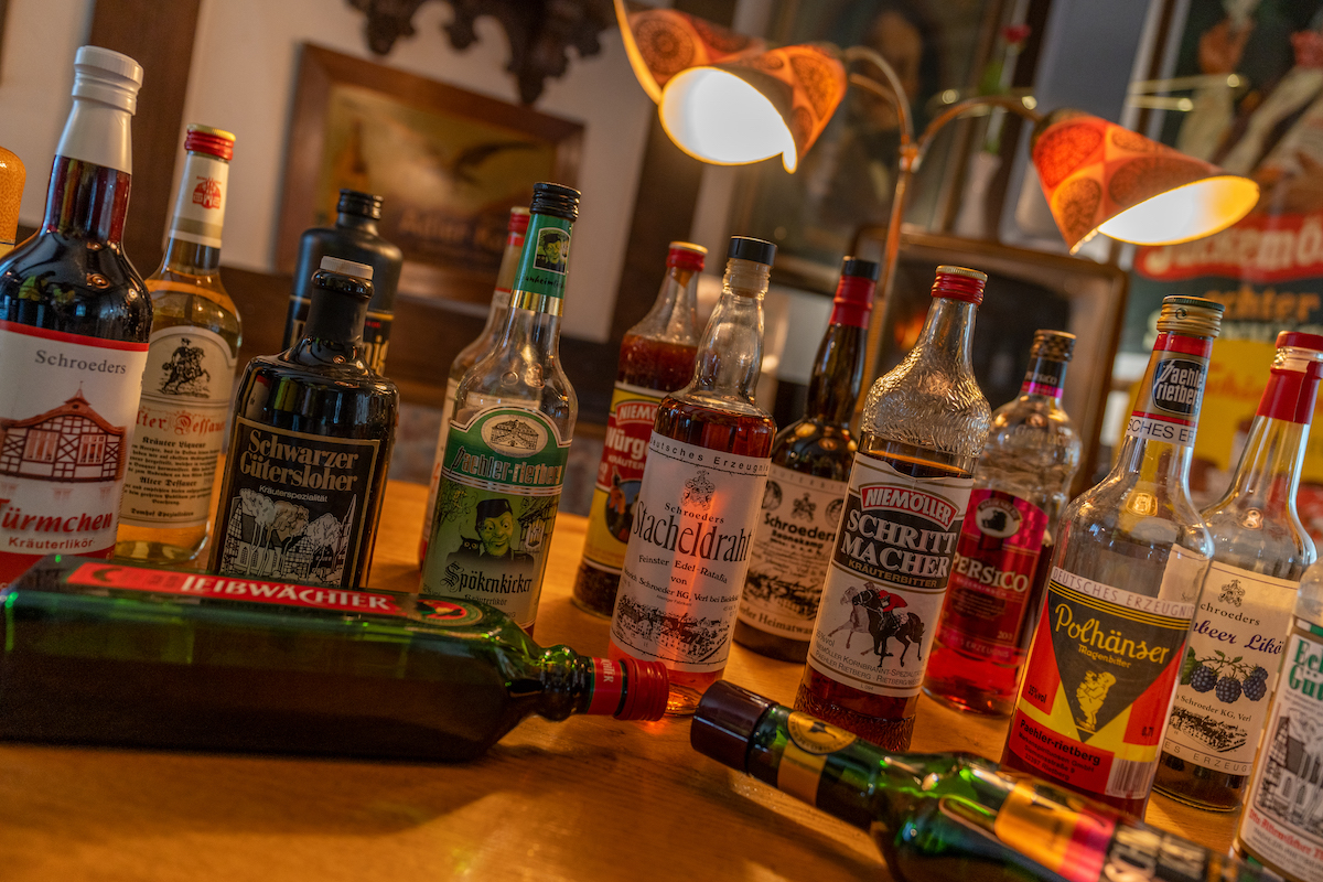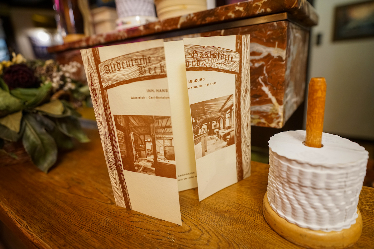 Nur ein paar Schritte weiter – und man tritt in eine andere Welt. Die Gaststube, seit 1972 nahezu unverändert, wirkt wie eine Zeitkapsel. Holzvertäfelungen, alte Radios, bunte Blechschilder und Sammlerstücke, die Volker Beckord in Jahrzehnten zusammengetragen hat. Hier wirkt nichts künstlich inszeniert, alles ist echt gewachsen.