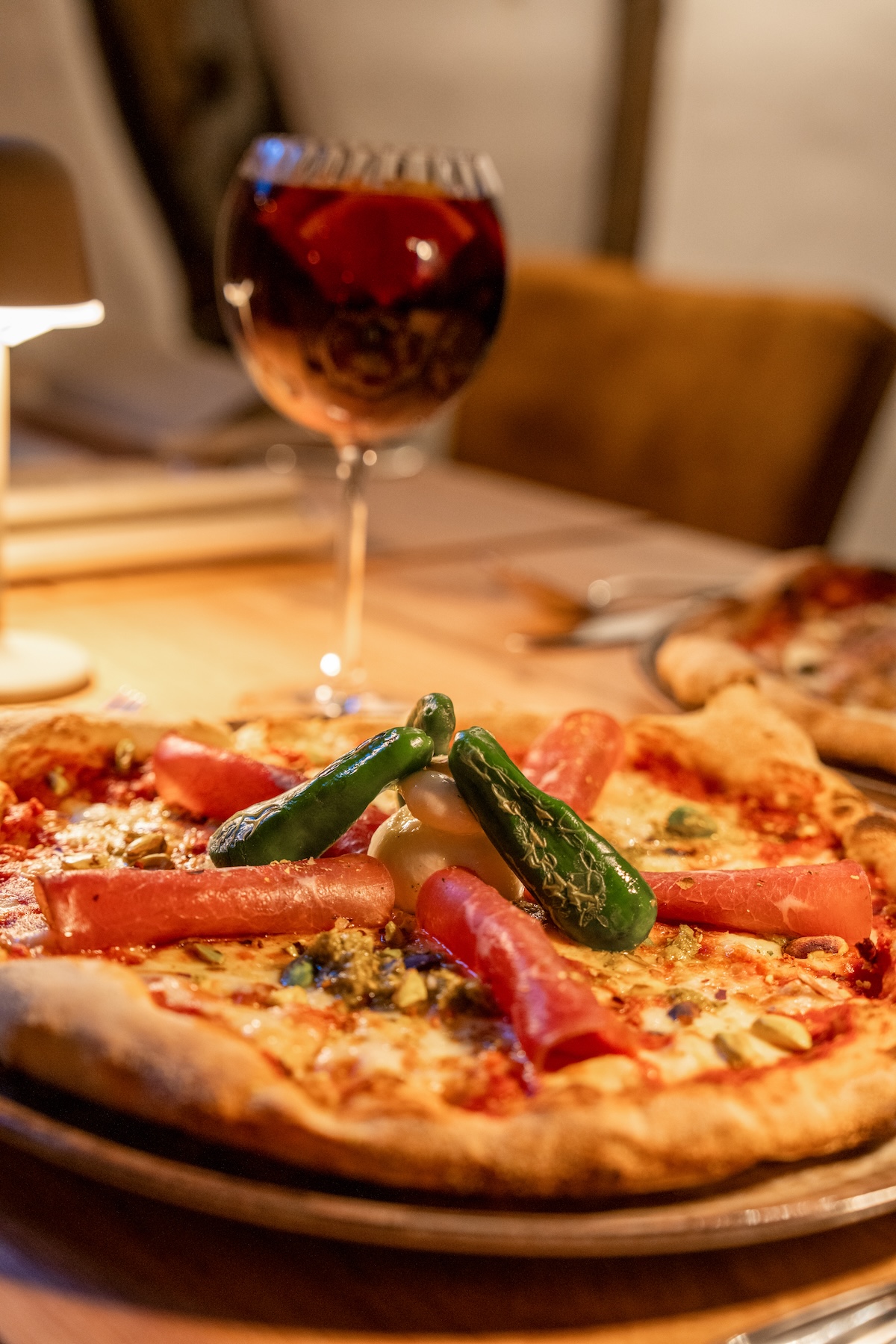 Knuspriger Rand, saftig und opulent, als käme sie direkt aus Italien. Stilistisch irgendwo zwischen Neapel und Samirs eigener Handschrift. Das Aushängeschild: die Pizza Il Museo mit Rinderschinken, Prosciutto, Burrata, Pimientos und Pistazien. Eine Kombination, die überrascht – und bleibt. Zum Abschluss etwas Sü.es? Hausgemachtes Tiramisu, Bubble-Waffeln oder Churros-Waffeln. Dazu ein Espresso. Oder ein Cocktail. Klassisch geht immer – Negroni, Espresso Martini. Wer alkoholfrei bleiben möchte, bestellt die Granada Limonada: Cranberry, Zitrone, Tonic, Rosenwasser, viel Eis. Intensiv, duftig, fast ein kleines Ritual. Und ja – sie qualmt.