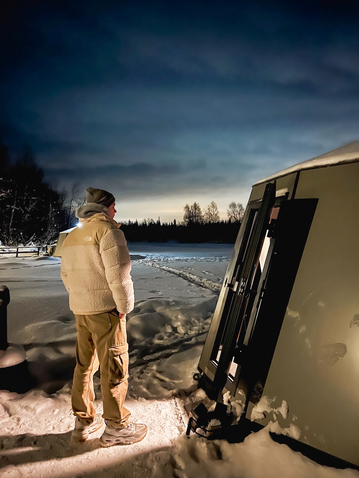 Seine Unterkunft in Lappland: ein Glasiglu mitten in der Wildnis. Unter dem gläsernen Dach sah Alex in die unendliche Dunkelheit und spürte, dass dies mehr war als Urlaub. Trotz der Enttäuschung, keine Polarlichter gesehen zu haben, blieb das Gefühl von Freiheit, Stille und Faszination – eingefangen in einer Nacht, die man nie vergisst.