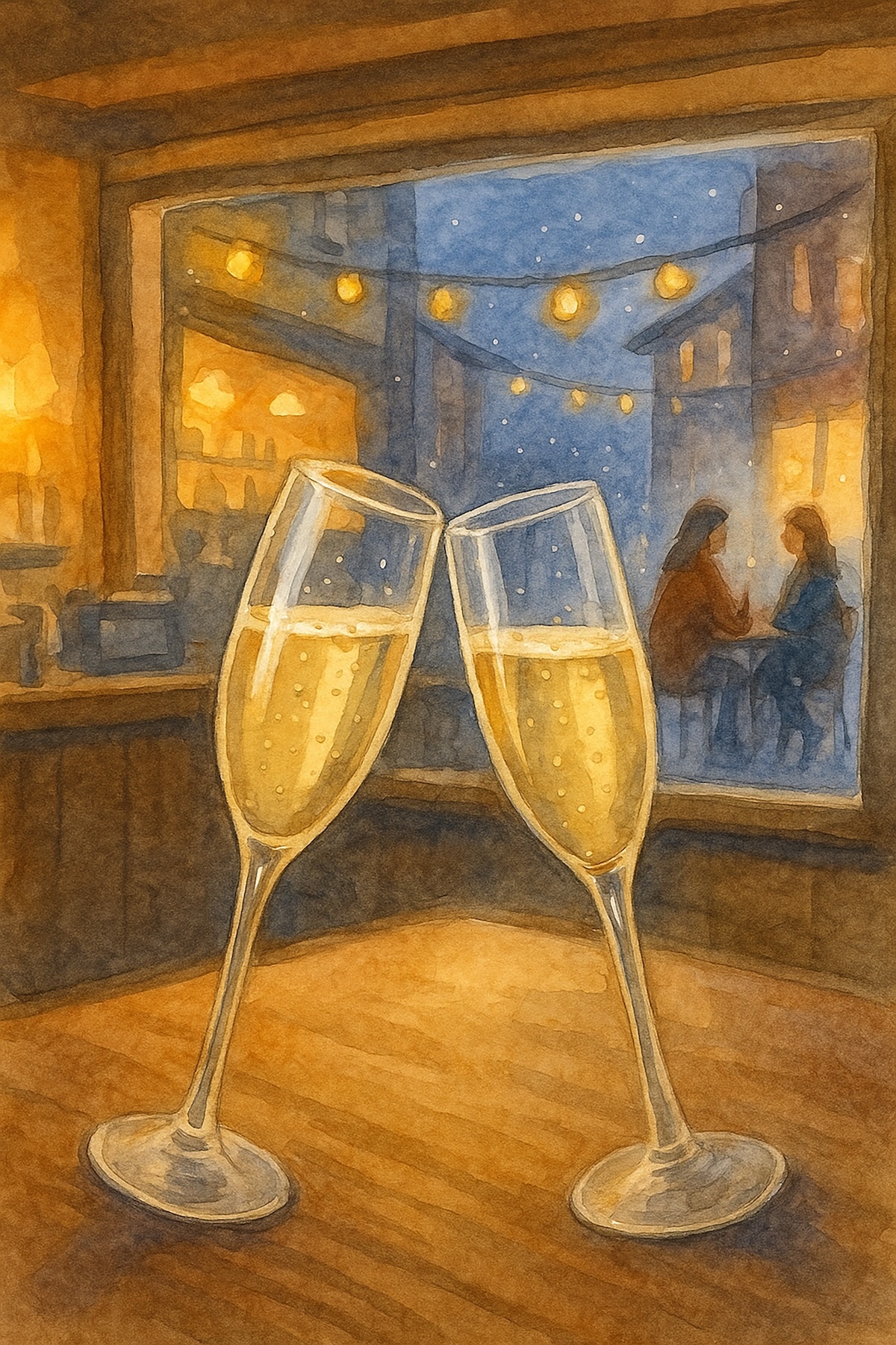 Julia legte ihre Hand auf Annas. »Das soll uns nie wieder passieren. Abgemacht?« »Abgemacht.« Anna lächelte mit diesem warmen, alten Anna-Lächeln. »Und das neue Jahr fangen wir zusammen an. Kein Silvester mehr ohne dich.« In diesem Moment kam die Kellnerin mit zwei Sektgläsern. »Der Herr an der Theke lädt die Damen ein und wünscht einen guten Rutsch ins neue Jahr 2026.« Der Mann hob das Glas und nickte ihnen zu, als hätte er verstanden, dass er Zeuge eines seltenen Moments geworden war.