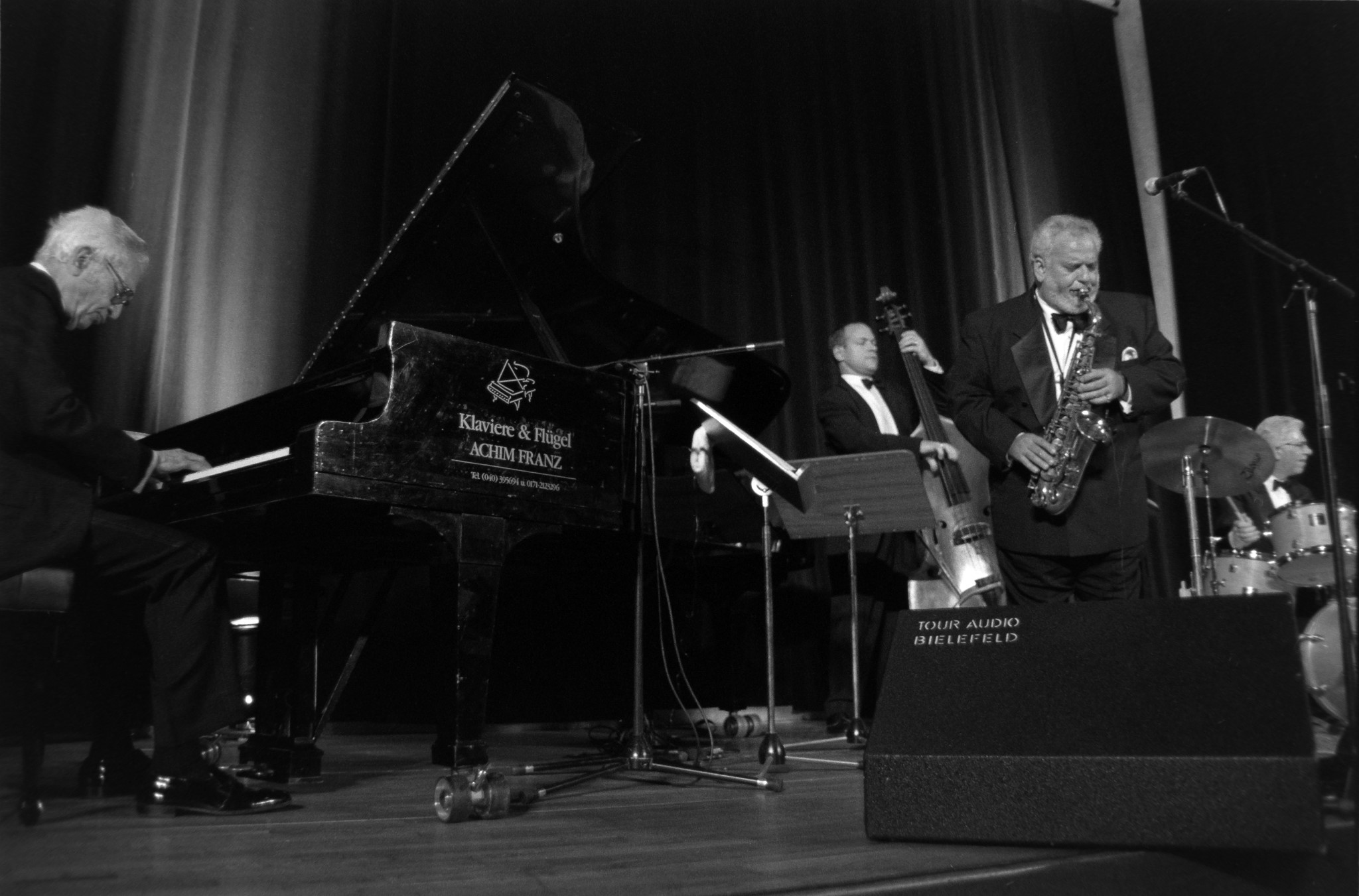 Im Oktober 1999 gab wieder einmal eine der letzten noch lebenden Legenden des Jazz ihre Visitenkarte in Gütersloh ab, und wieder einmal konnten sowohl die älteren Jazzfans in Nostalgie schwelgen als auch interessierte Jüngere ihre Neugier befriedigen. Man muss kein Jazzfan sein, um auch heute noch die ersten Takte einige der Ohrwürmer, komponiert entweder von Dave Brubeck selbst oder seinem Altsaxophonisten Paul Desmond, sofort zu erkennen und mitzuklopfen: »Take Five« oder »Blue Rondo a la Turck« erlangten Weltruhm, ihre verzwickten 6/4, 7/4 oder 9/8 Takte wurden zum Markenzeichen und machten besonders auch den Drummer Joe Morello, der diese Takte scheinbar mühelos halten konnte, bei Experten weltberühmt. »Take Five« war die erste Jazz Single Aufnahme, die sich über eine Million mal verkaufte.