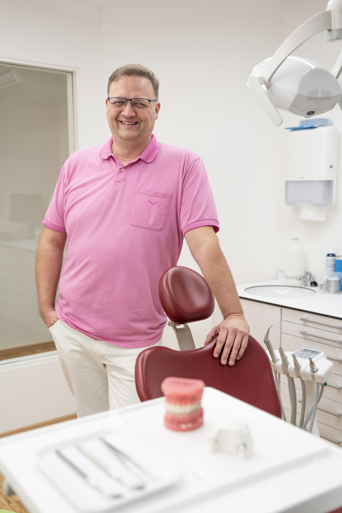 Stefan A. Roth ist nicht nur ein Meister seines Fachs, wenn es darum geht, Zähne und Kiefer wieder in ihre perfekte Position zu bringen, sondern auch ein leidenschaftlicher Fortbildungsfanatiker. Der Familienvater hat sich ganz der ständigen Weiterentwicklung verschrieben und kennt alle Tricks und Techniken der modernen Kieferorthopädie.
