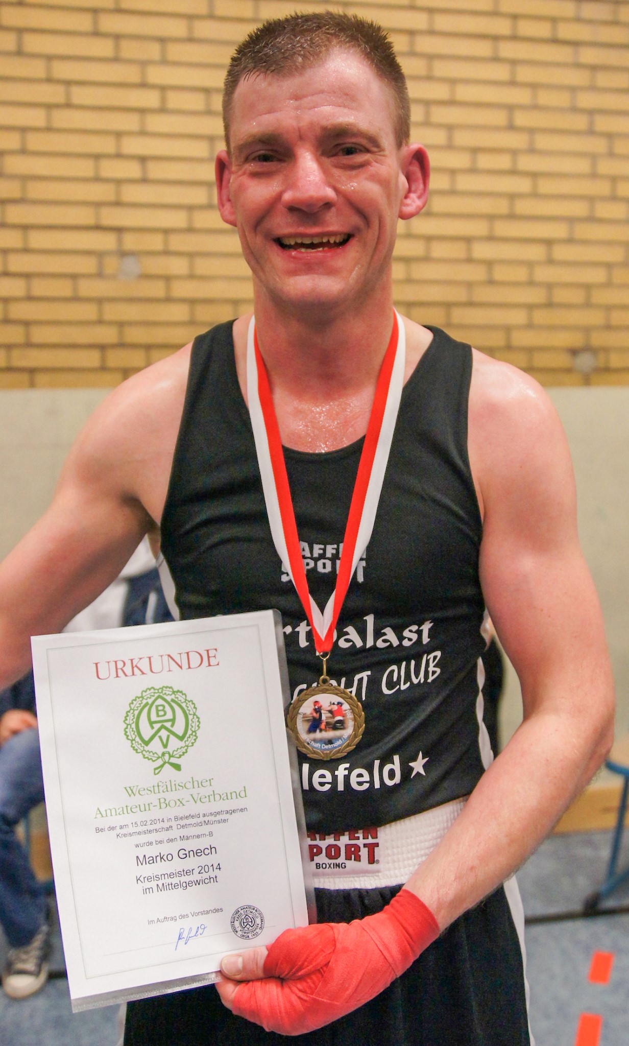 Neben dem eigenen Training und den Wettkämpfen engagiert sich Marko als 1. Vorsitzender und Kassenwart beim Boxsport Bielefeld e.V., dem Verein, der heute im Sportpark Elan trainiert. Gemeinsam mit seinem besten Freund Nico Wilke, dem 2. Vorsitzenden, hält er den Laden am Laufen. Die beiden »rocken den Verein«, wie Marko sagt – und das meint er nicht ironisch.