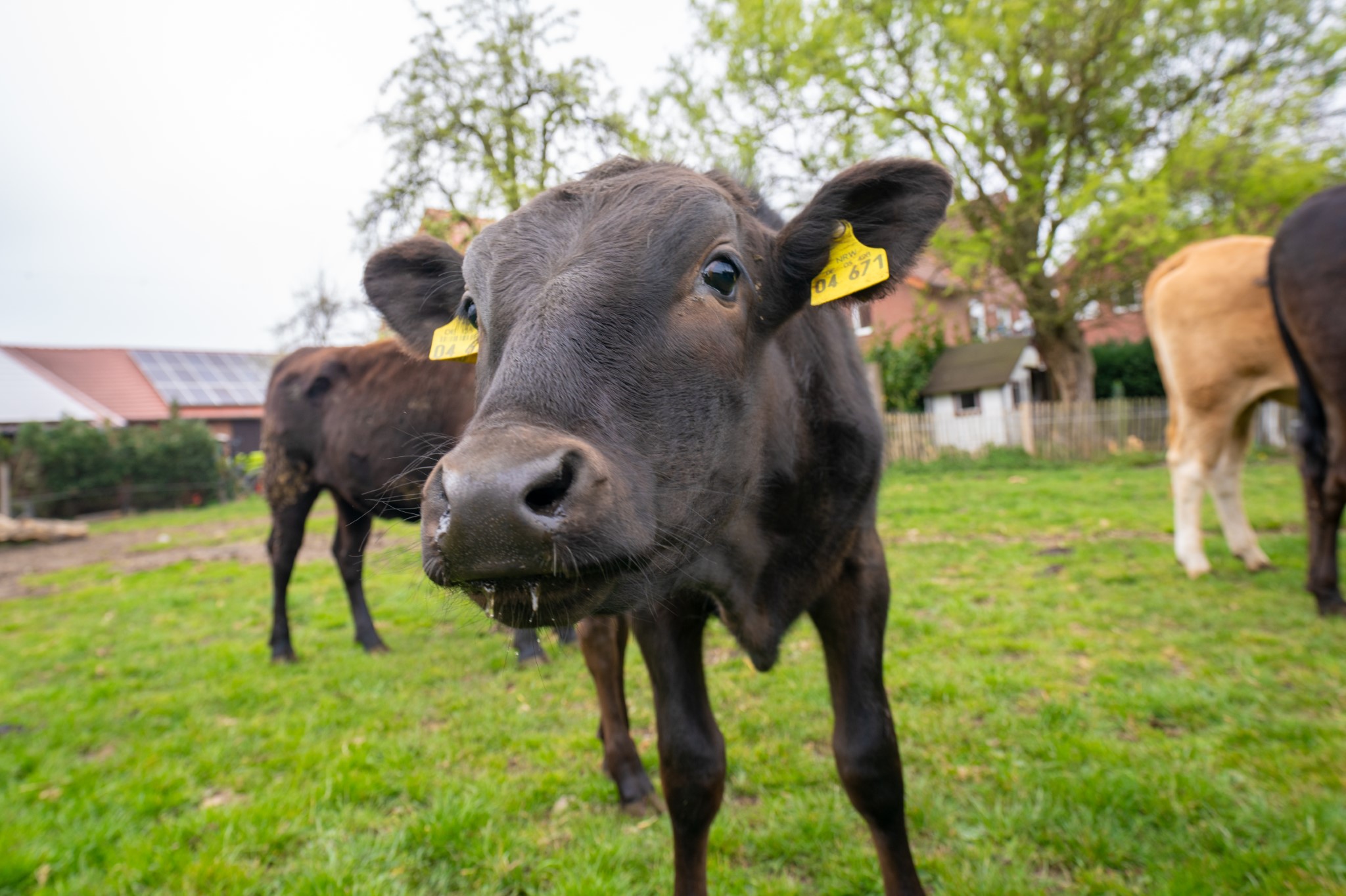 Das Fleisch dieser Rasse ist nachweislich sehr gesund und soll vom Omega 3-Gehalt vergleichbar sein mit Lachs, erzählt uns Michael Wulle. Angefangen hat alles mit einem Embryo-Transfer aus Übersee. Es gibt einen weltweiten Markt und Handel mit Embryonen und Sperma für die Züchtung. So kommt Letzteres auch schon mal aus Australien. Die Züchtung der Landwirte war überaus erfolgreich und inzwischen läuft schon eine beachtliche Wagyu-Herde auf der Weide der Wulles herum. Als ob das nicht schon ungewöhnlich genug wäre, setzt Michael Wulle zusätzlich auf hornlose Züchtungen. Wagyu-Rinder, die normalerweise Hörner haben, bekommen diese oft nur unter großen Schmerzen entfernt, um sich selbst oder andere Tiere damit nicht zu verletzen.