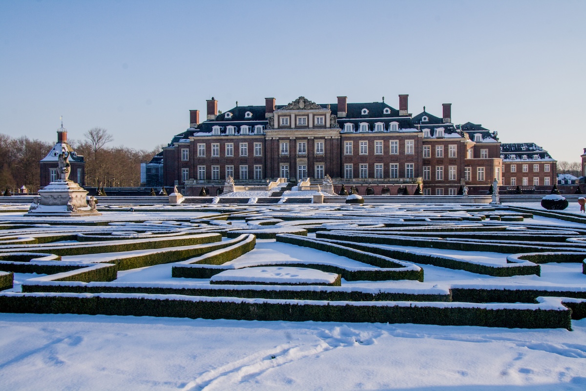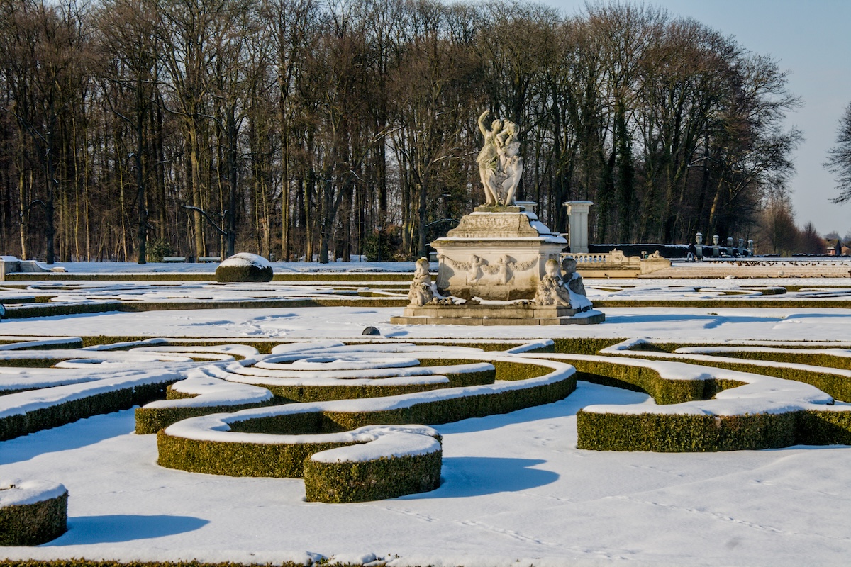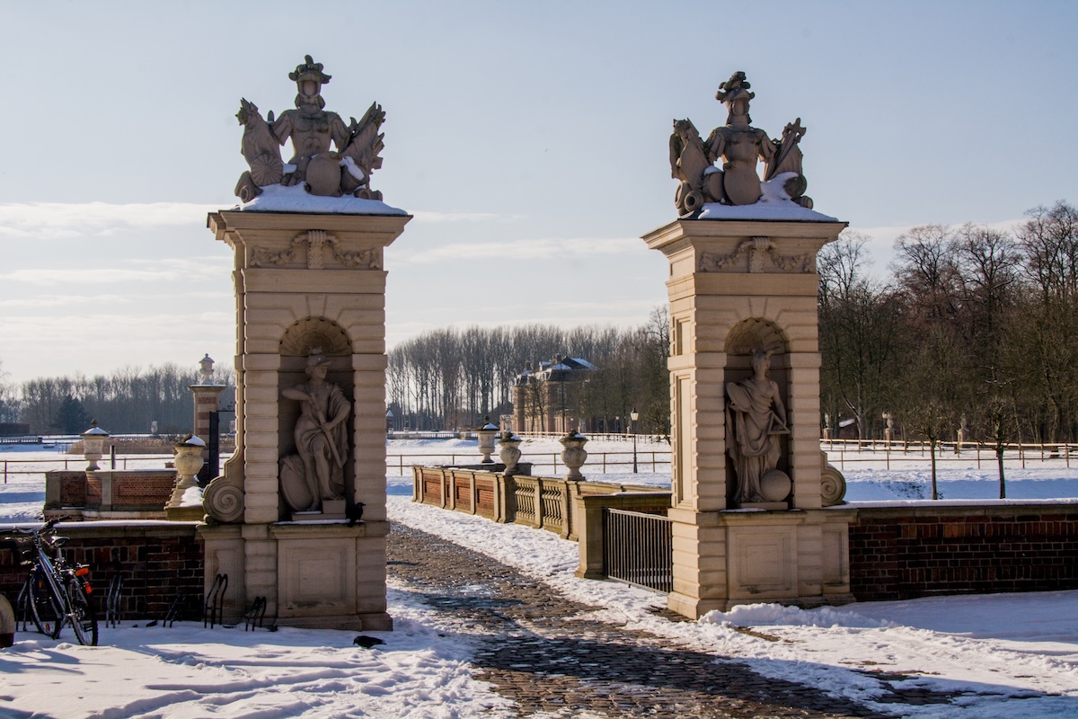 Die Schlossgebäude sind von einem rund 172 Hektar großen Schlosspark umgeben, der ein wichtiger Garten des European Garden Heritage Network ist. Der zentrale Teil des heutigen Schlossparks ist die nördlich vor dem Schloss gelegene Venusinsel. Ihren Namen verdankt sie den dort aufgestellten Venusfiguren. Vom Schloss aus gelangt man über eine große Terrasse und eine breite Freitreppe auf die tiefer liegende, etwa 240 x 130 Meter große Insel. Im Zentrum befindet sich ein Broderieparterre aus kunstvoll geschnittenem Buchs, Eiben und Liguster. Seitlich schließen sich schlichtere Rasenparterres an, die von 1,30 Meter breiten, mit Buchs eingefassten Blumenrabatten begleitet werden.