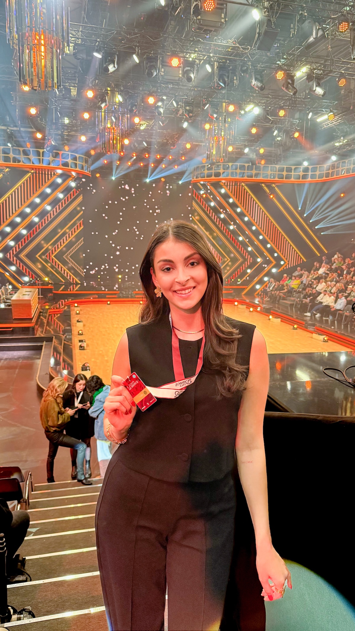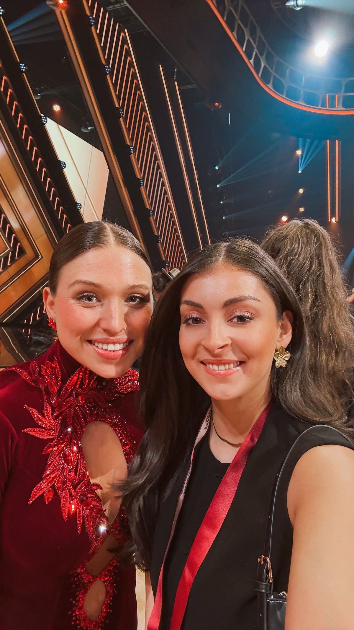 Auch im Saal gibt es viel zu entdecken. Unter den diesjährigen Promi-Kandidaten sticht Bibi Heinicke hervor, die heute alles gibt, während ihr Partner Timothy sie vom Publikum aus unterstützt. Auch Stimmungskanone Ross Antony wirbelt dieses Jahr als Kandidat über das Parkett. In den Zuschauerreihen sichte ich zudem bekannte Gesichter der letzten Staffel: Knossi und SelfieSandra lassen es sich nicht nehmen, ihre Nachfolger anzufeuern.
