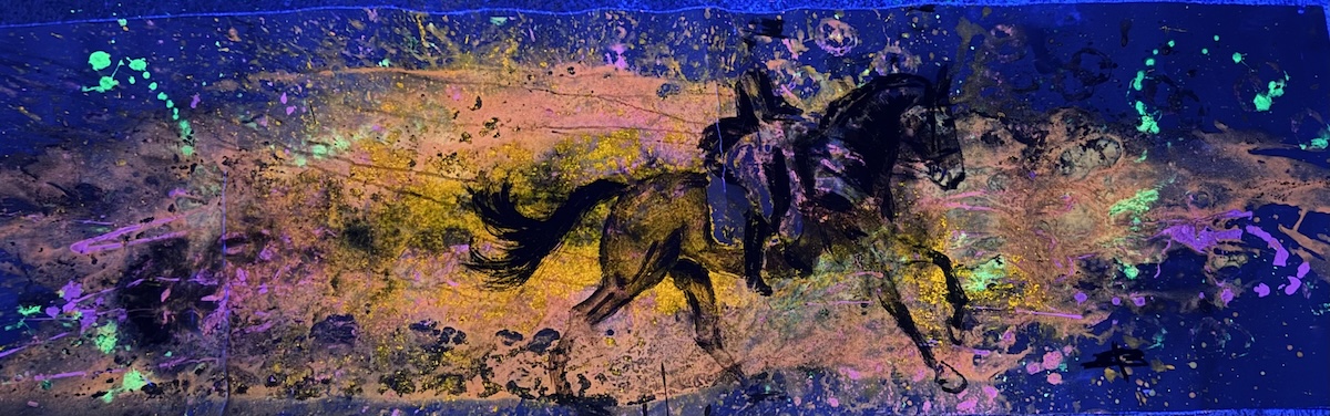Pferde spielen in Simones Leben ohnehin eine zentrale Rolle. »Ich bin so ’ne kleine Pippi Langstrumpf«, sagt sie lachend – und genau so wirken ihre Werke: wild, frei, kraftvoll. Ihre neon-expressive Art fängt die Energie der Tiere auf unverwechselbare Weise ein.