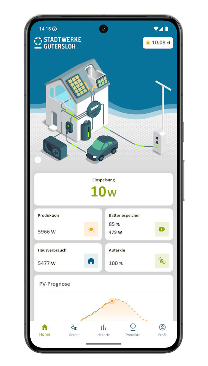 • Kunden der Stadtwerke Gütersloh, die den dynamischen Tarif gebucht haben, können die App ohne Zusatzkosten vollumfänglich nutzen.