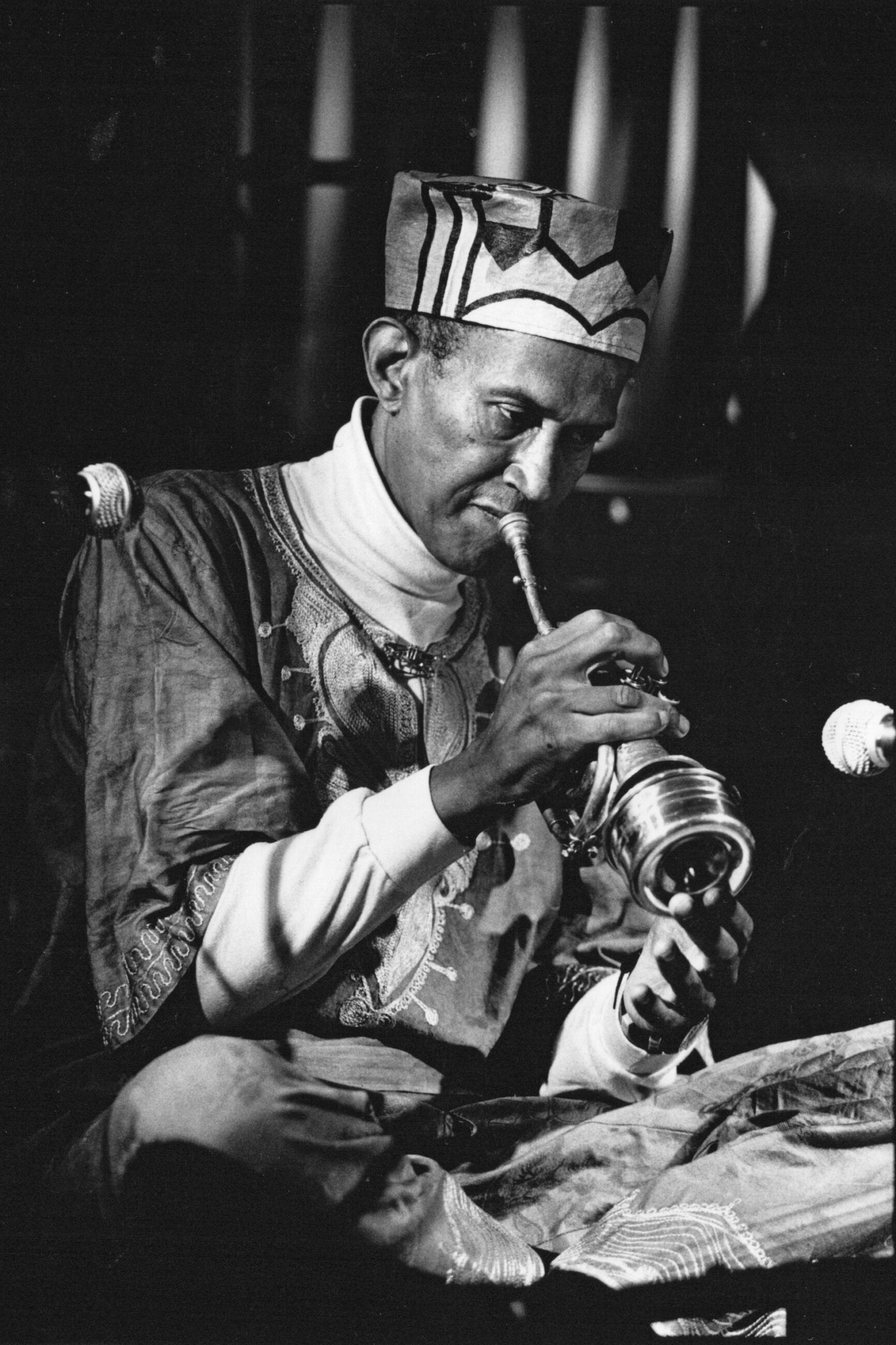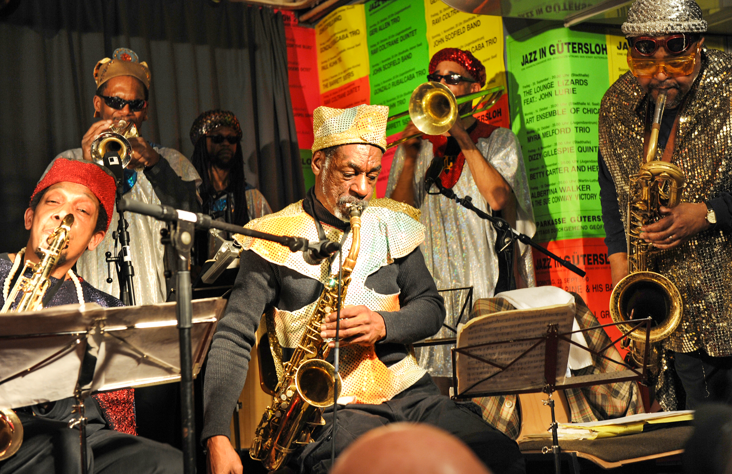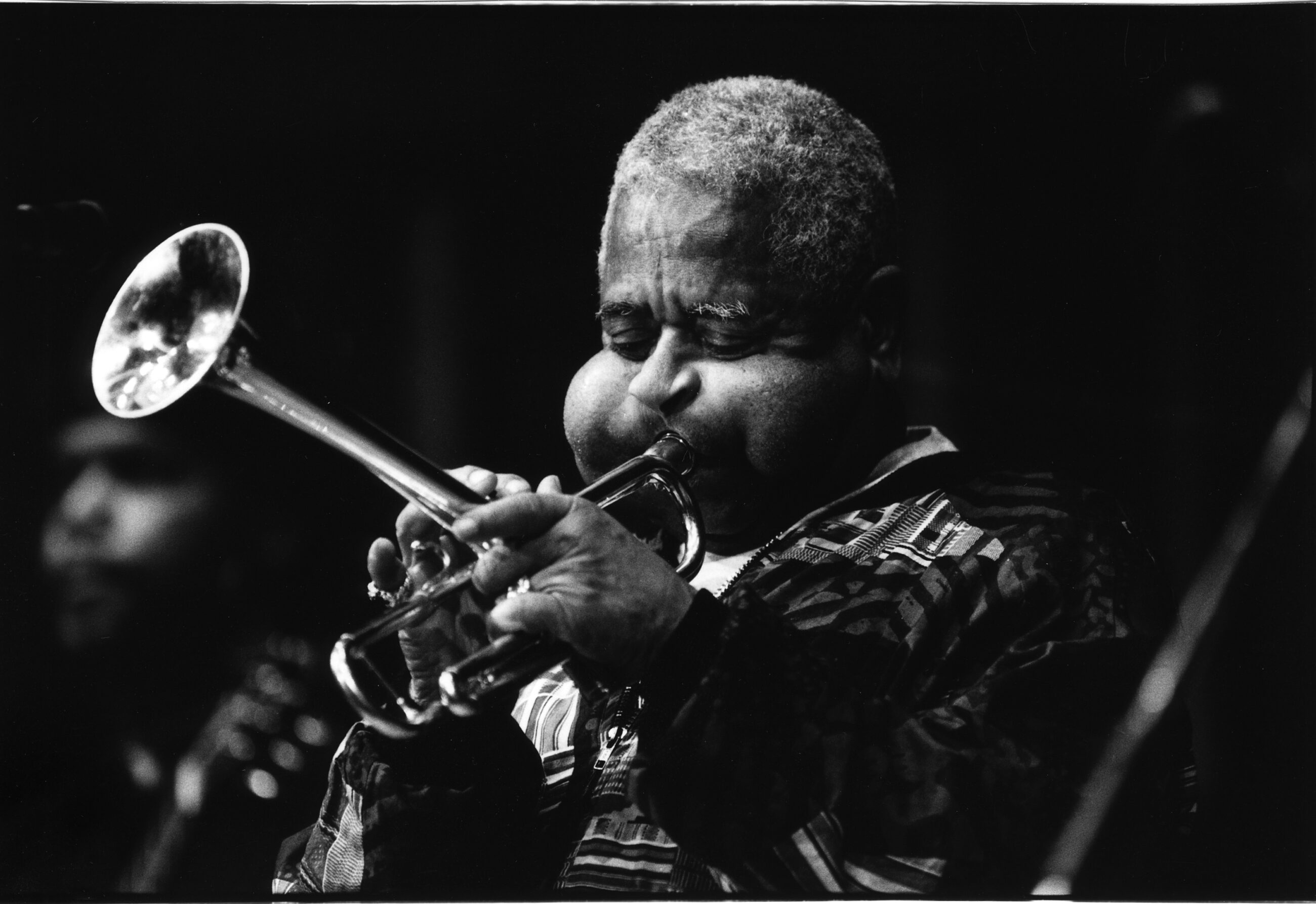 Wunderbare Fotos zeigen wir Euch hier von anderen unvergesslichen Konzerten: Am Schluss der Reihe trat noch einmal das Sun Ra Arkestra, mit dem heute 101 Jahre alten Marshall Allen auf. Die Gruppe lieferte jetzt gerade ein in der Presse enthusiastisch gefeiertes Comeback mit Marshall Allens erster(!) Platte »New Dawn« ab. Neben den vielen schon hervorgehobenen Sängerinnen hatten wir die damals noch weitgehend unbekannten, inzwischen populären Dianne Reeves und Vanessa Rubin bereits 1996 im Jugendzentrum sowie von den Kapverden Cesária Évora im alten Theater zu Gast. Die deutschen Pianisten Paul Kuhn und Joachim Kühn (mit Eartha Kitt) sollten nicht vergessen werden, ebenso wenig der als Fusion-Gitarrist bekannt gewordene Larry Coryell und die vielen amerikanischen Künstler, die im weitesten Sinne der Avantgarde zuzurechnen waren: Neben den schon erwähnten Chico Freeman (mit The Leaders) und Arthur Blythe die Trompeter Eddie Henderson (ebenfalls bei The Leaders) und Wadada Leo Smith.