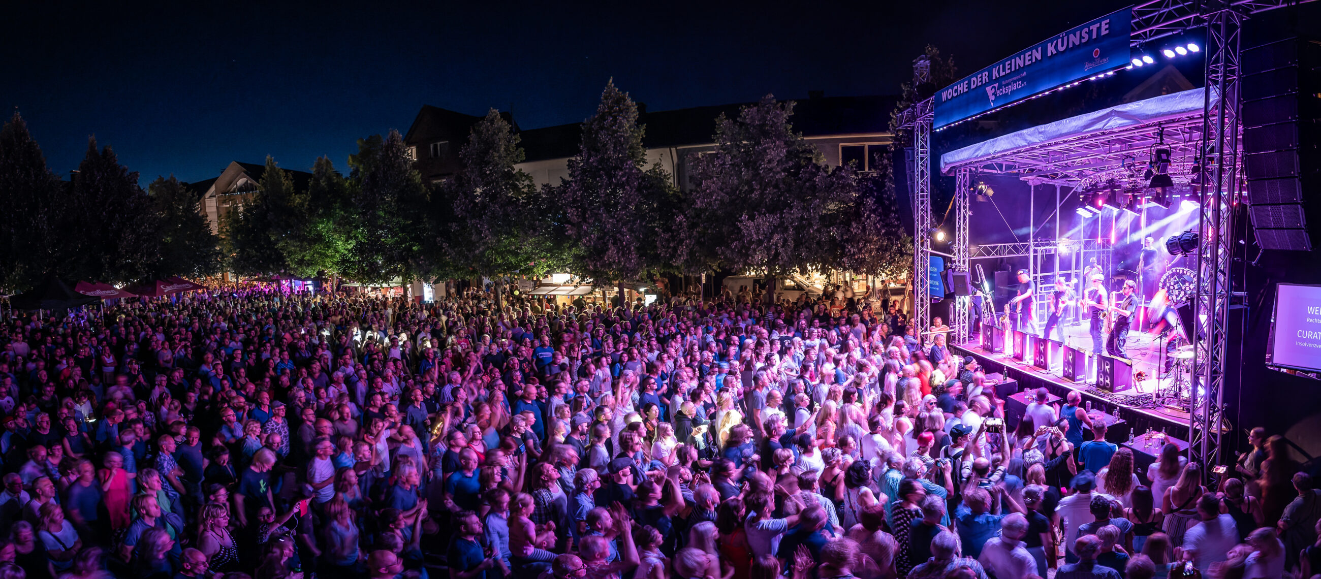 25.-29. August 2025 ab 19:30 Uhr / Eintritt frei Liebe Fans der »WOCHE DER KLEINEN KÜNSTE«! Es ist wieder soweit! Vom 25. bis 29. August 2025 wird »das Fest des Jahres« tausende Musikfans anlocken und begeistern. Deshalb heißt es wieder Bühne frei für 10 hochkarätige Music-Acts aus ganz Europa.