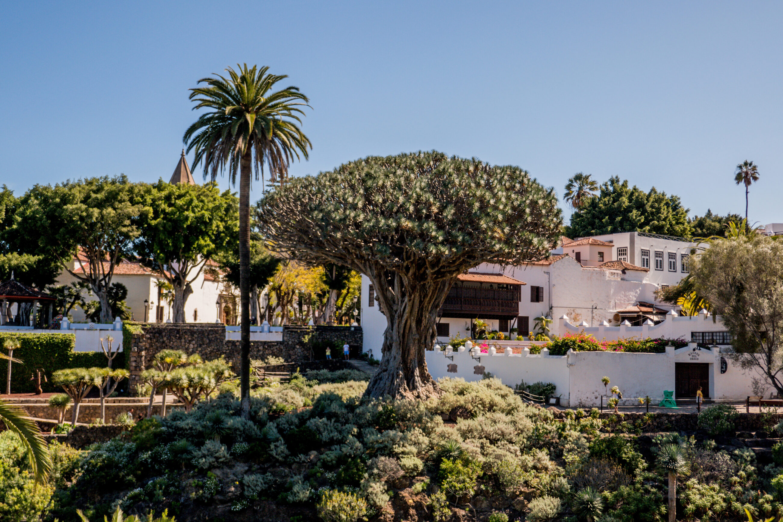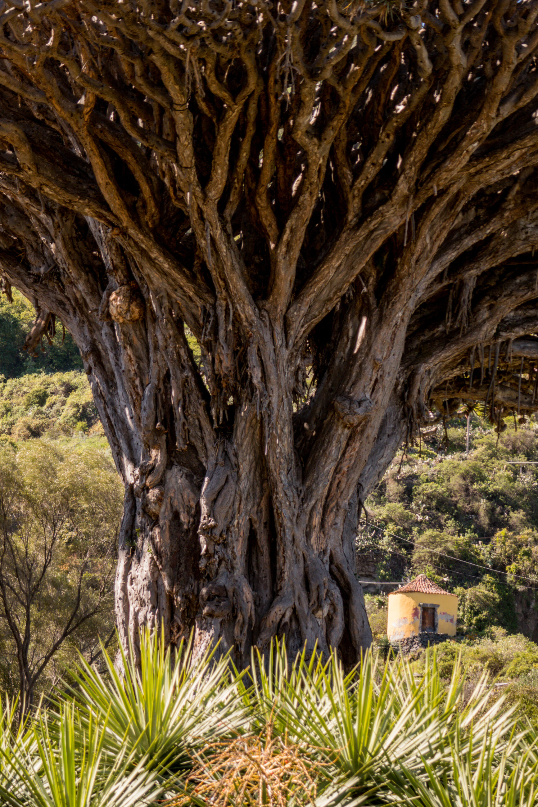 PART 36 DANIELAS BLOG - Beeindruckende Botanik In der Gemeinde Icod de los Vinos im Nordwesten Teneriffas steht der größte kanarische Drachenbaum, der Drago Milenario. Neben dem Teide ist er eines der bekanntesten Wahrzeichen der Insel und seit 1917 ein nationales Denkmal. Lange Zeit schätzte man sein Alter auf über 1000 Jahre. Heute weiß man, dass er etwa 500 bis 800 Jahre alt ist. Der Baum befindet sich inmitten eines Botanischen Gartens, in dem viele endemische Pflanzenarten wachsen, die nur auf den Kanarischen Inseln vorkommen.