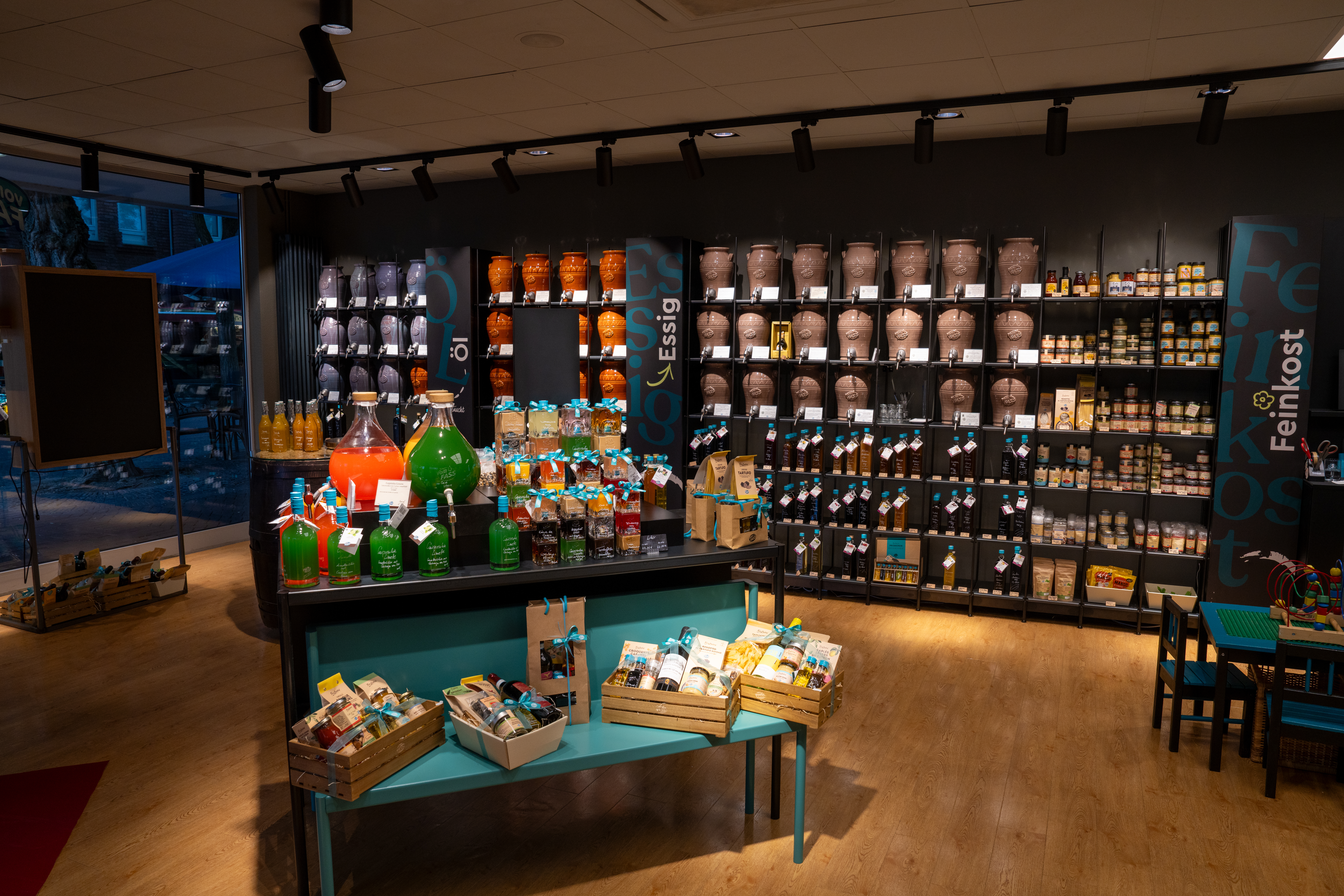 Die neue Fläche misst 75 qm – kompakter, aber mit größerem Lager und einem noch vielfältigeren Sortiment. Über 70 Weinsorten, auch alkoholfreie, stehen zur Auswahl. Öle, Essige und Spirituosen können wie gewohnt frisch in mitgebrachte oder bereitgestellte Flaschen abgefüllt werden – nachhaltig und aromafrisch.