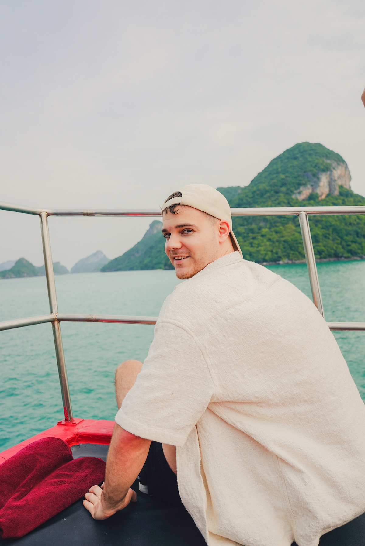 Ein Höhepunkt war der Besuch des Ang Thong Nationalparks, einer beeindruckenden Inselgruppe im Golf von Thailand. Alex empfiehlt, Touren mit privaten Speedbooten zu unternehmen, um die Landschaft fernab großer Besuchergruppen erleben zu können. Die Kombination aus türkisfarbenem Wasser, felsigen Küsten und verborgenen Buchten macht den Nationalpark zu einem jener Orte, die im Gedächtnis bleiben.